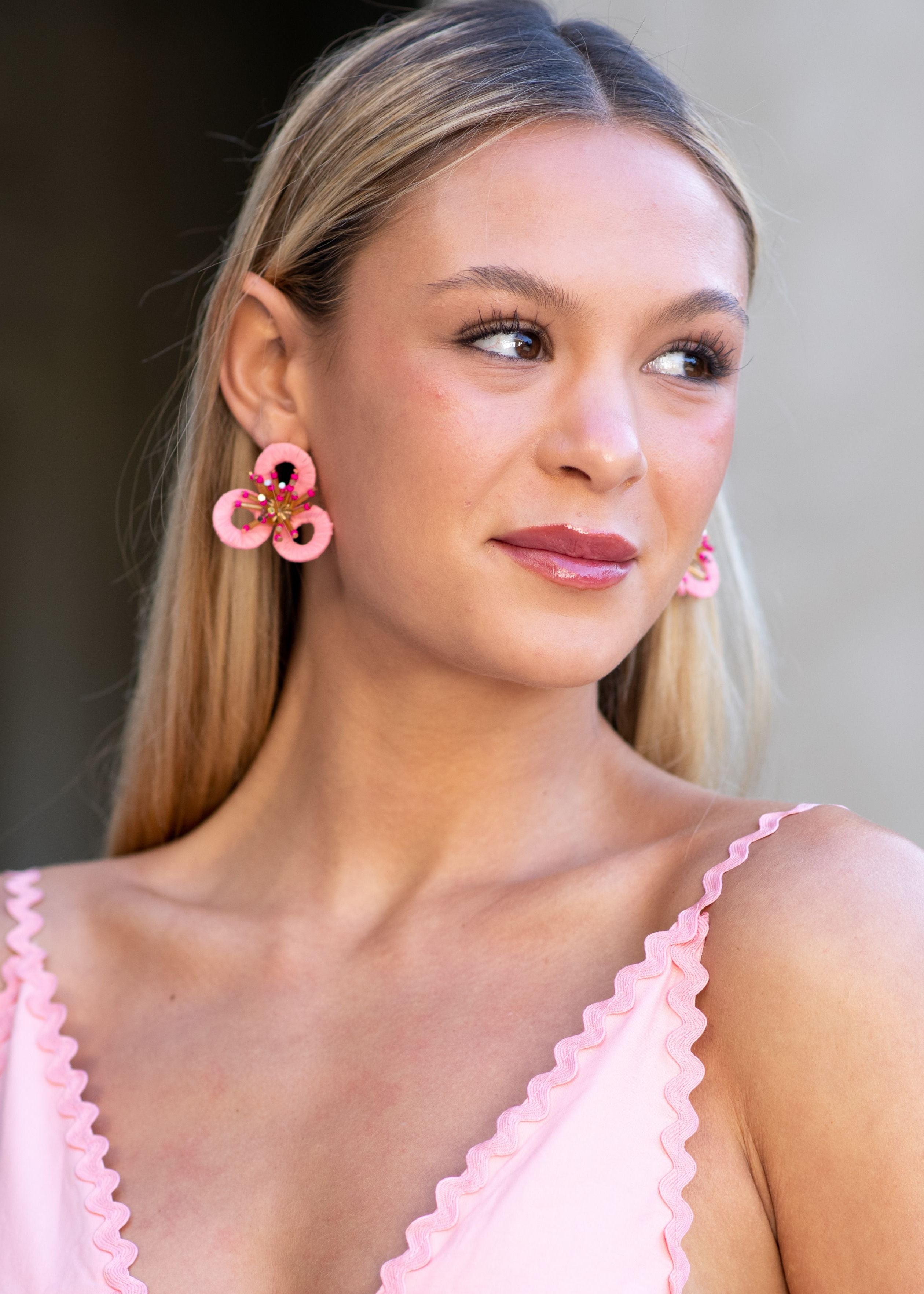Delicate beaded florals meet summery straw in these charming pink earrings. Perfect for adding a pop of color and whimsy to any outfit, these lightweight beauties are your new go-to accessory for effortless style.