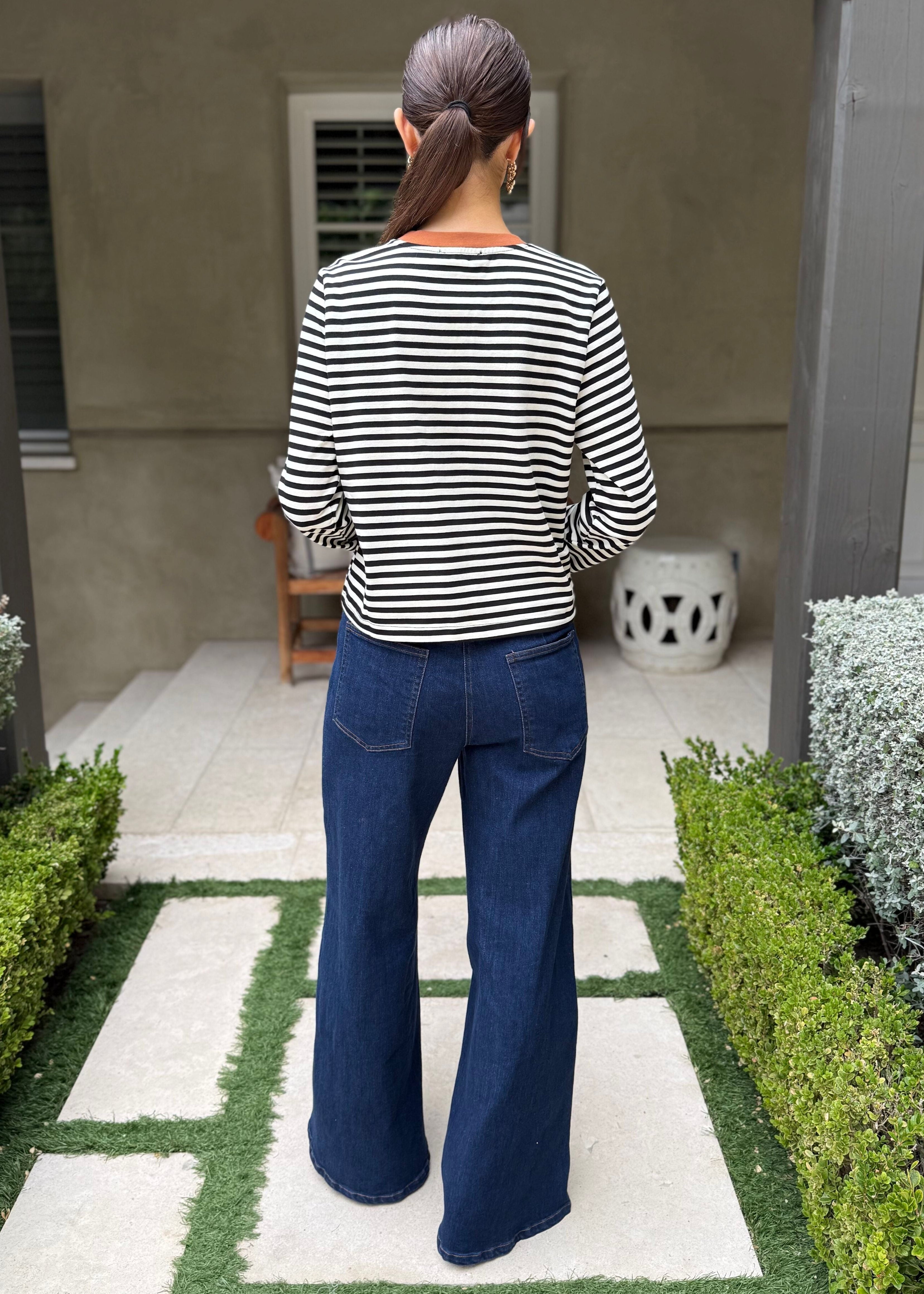 Remi Relaxed Fit Long Sleeve Striped Tee with Contrast Collar