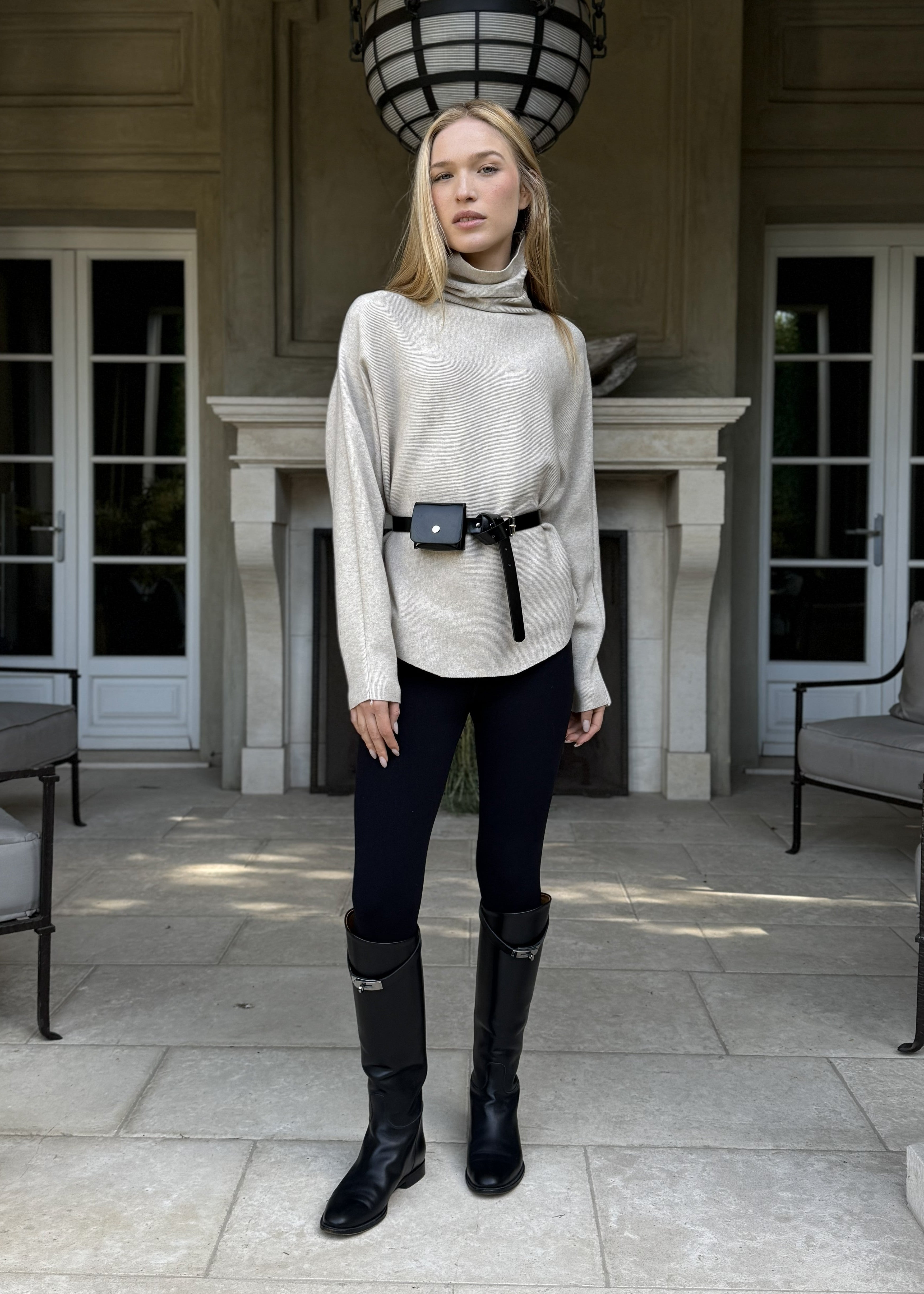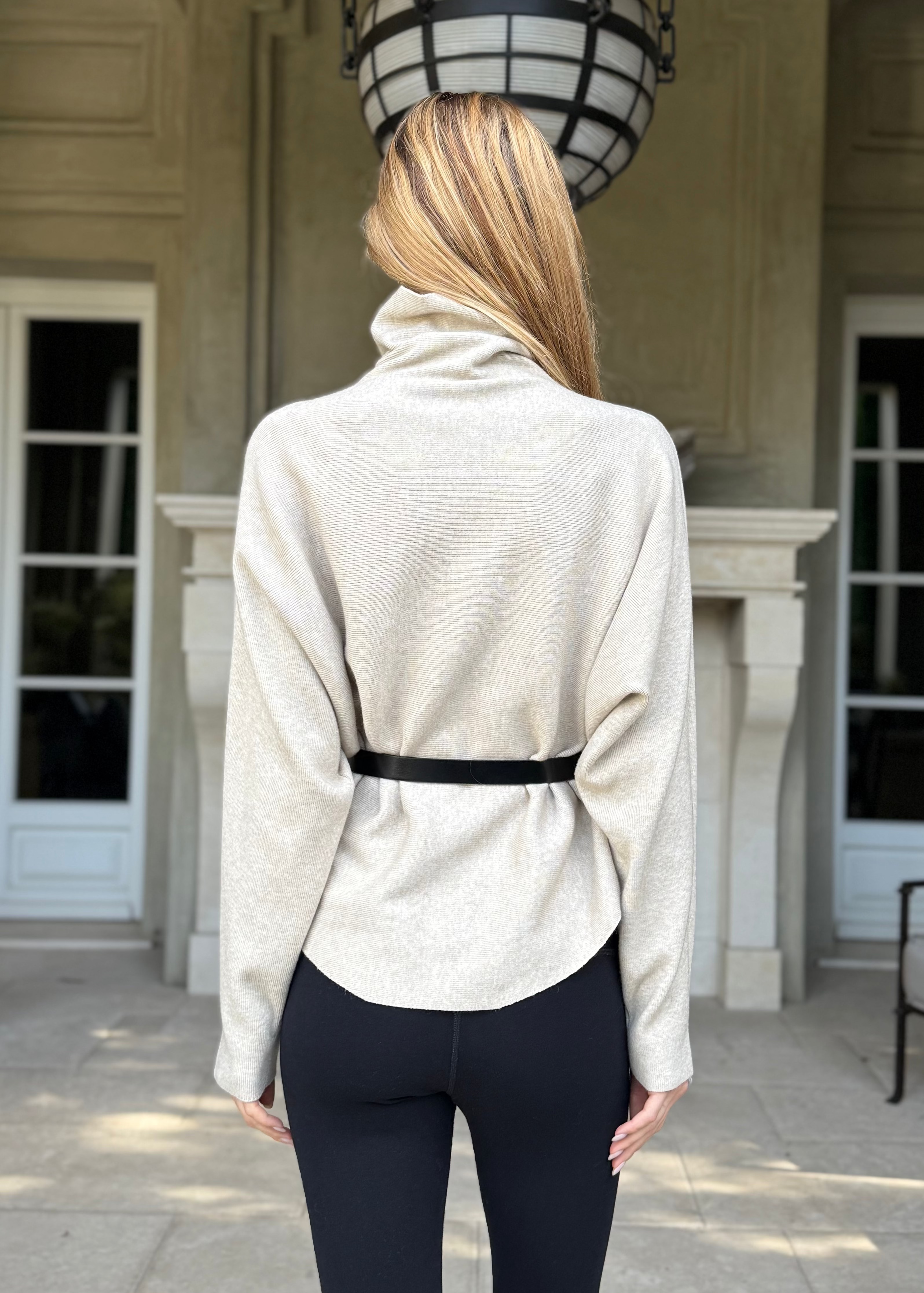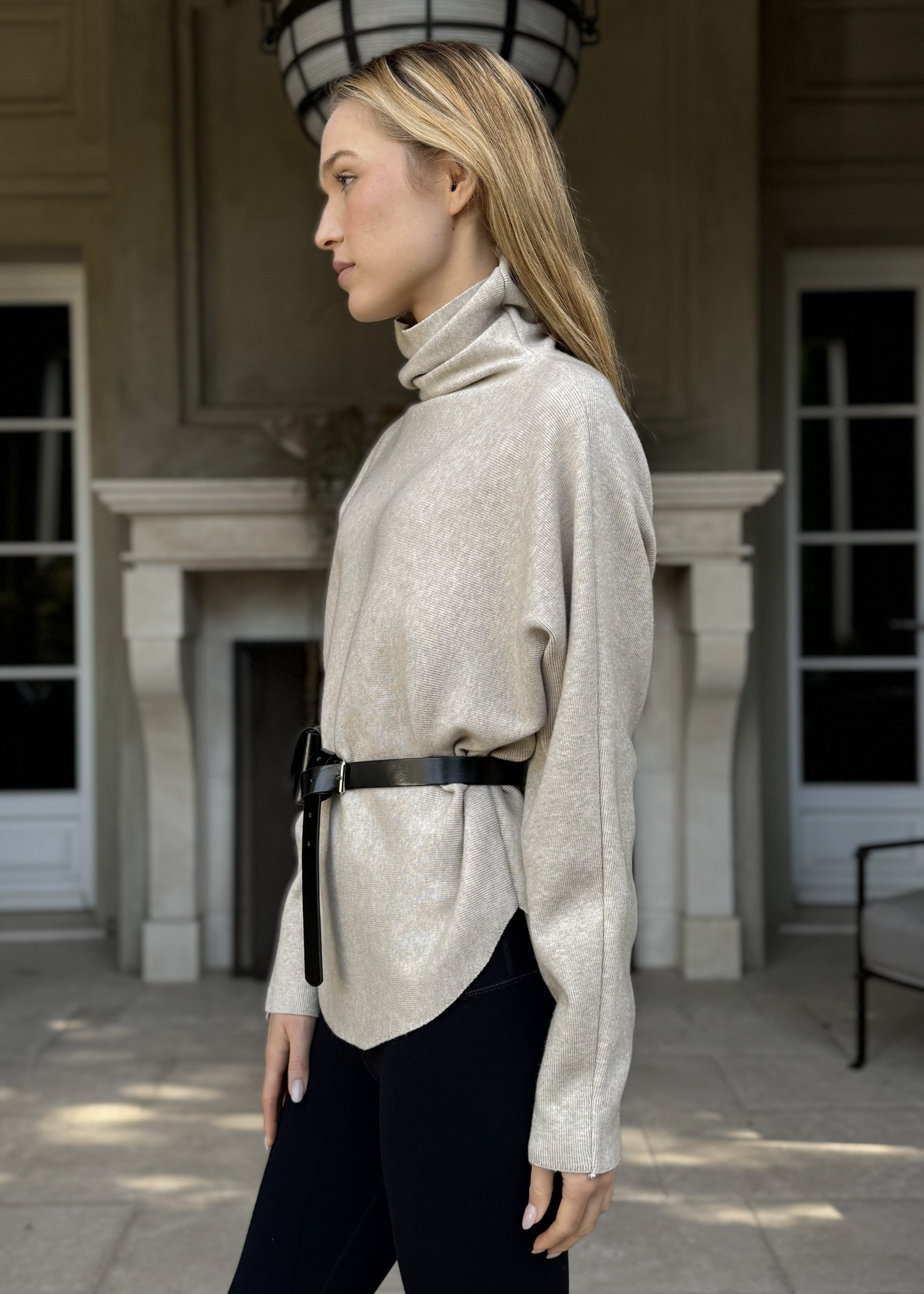 Frankie Beige Turtleneck Sweater and Pocket Belt