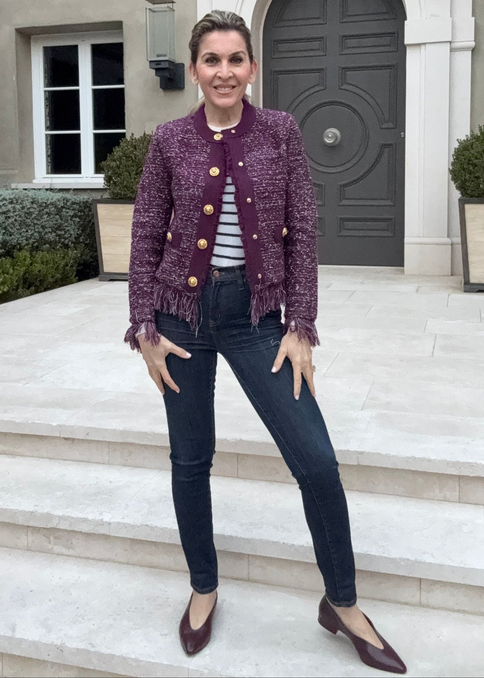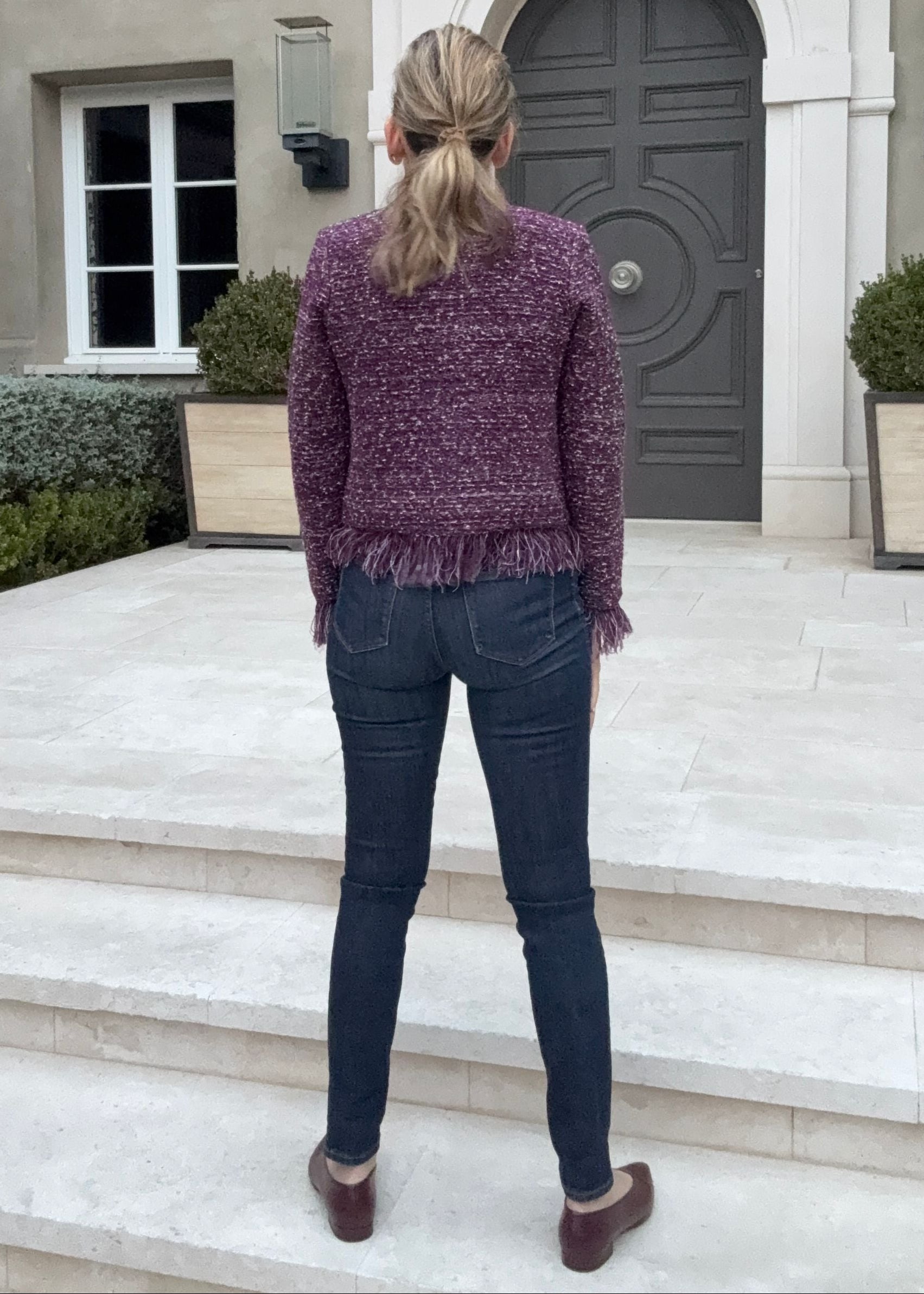 Jessica Fringe Hem Cropped Cardigan Jacket - Eggplant