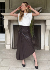 Kendra Knotted Wrap Style Vegan Leather Midi Skirt - Brown Burgundy