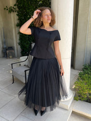 Isabeau Open Front Tiered Velvet Bow Tie Peasant Blouse