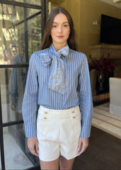 Beverly Denim Blouse with Bow Style Neck