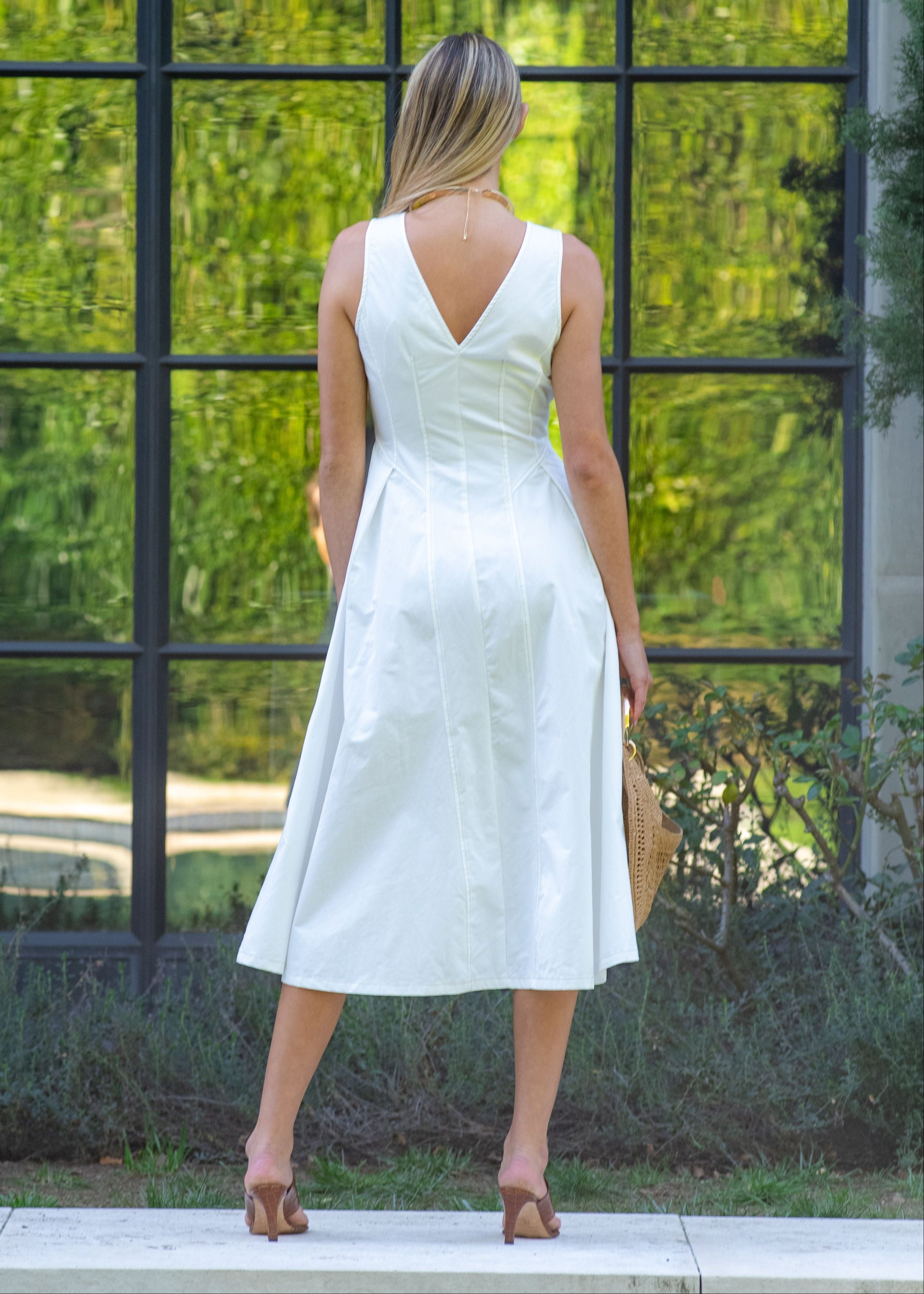Sani Sleeveless Button Down Midi Dress - White