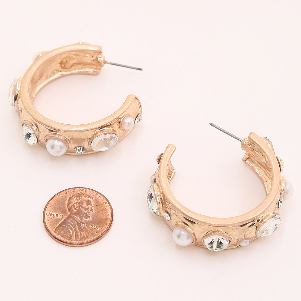 Rory Rhinestone and Pearl Embellished Open Hoop Earrings