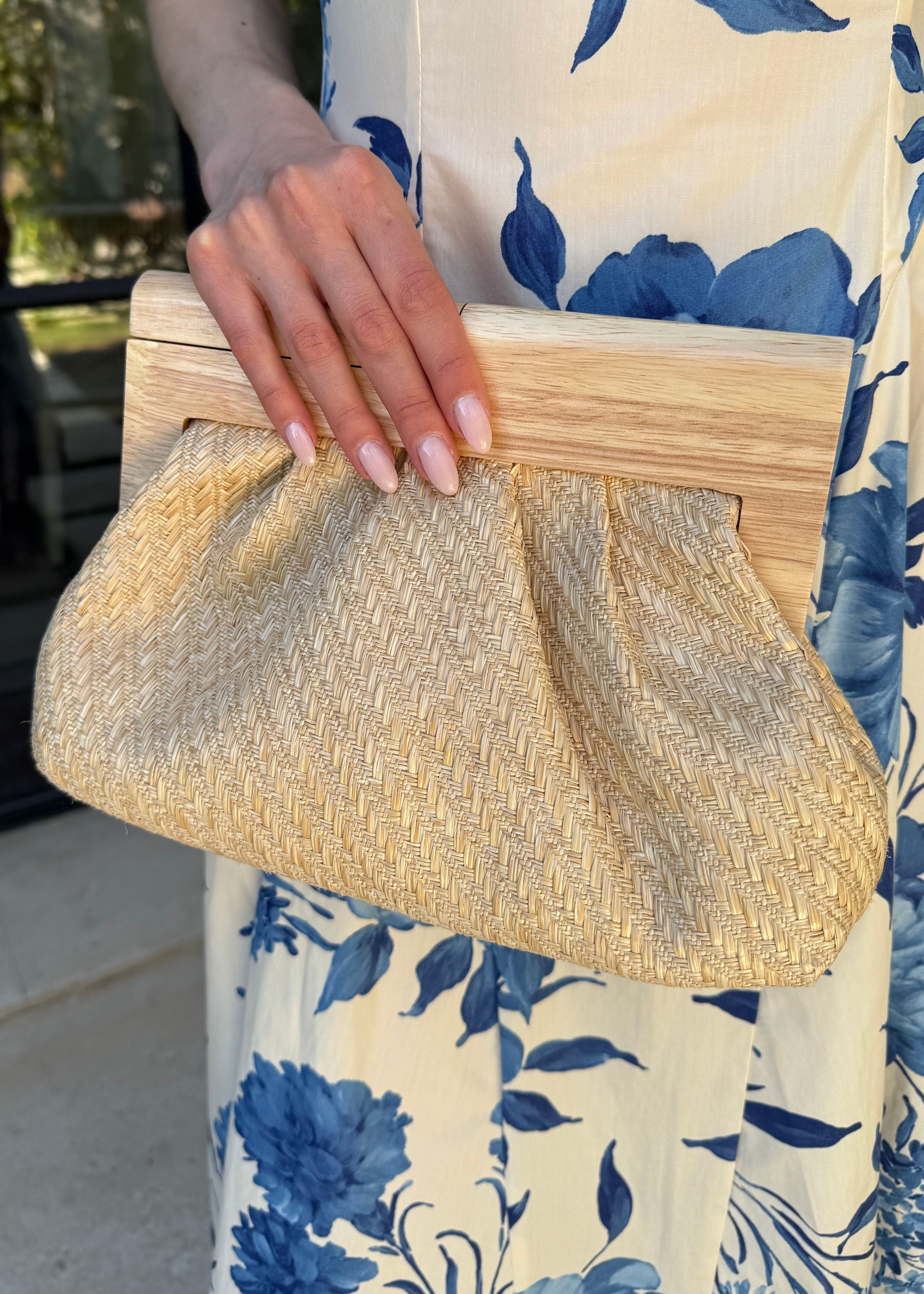 Caridad Tan Raffia Crossbody Clutch