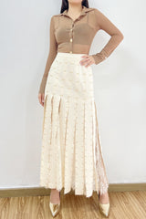 Lainey Bead Embellished Pleated Sheer Lace Skirt - Black