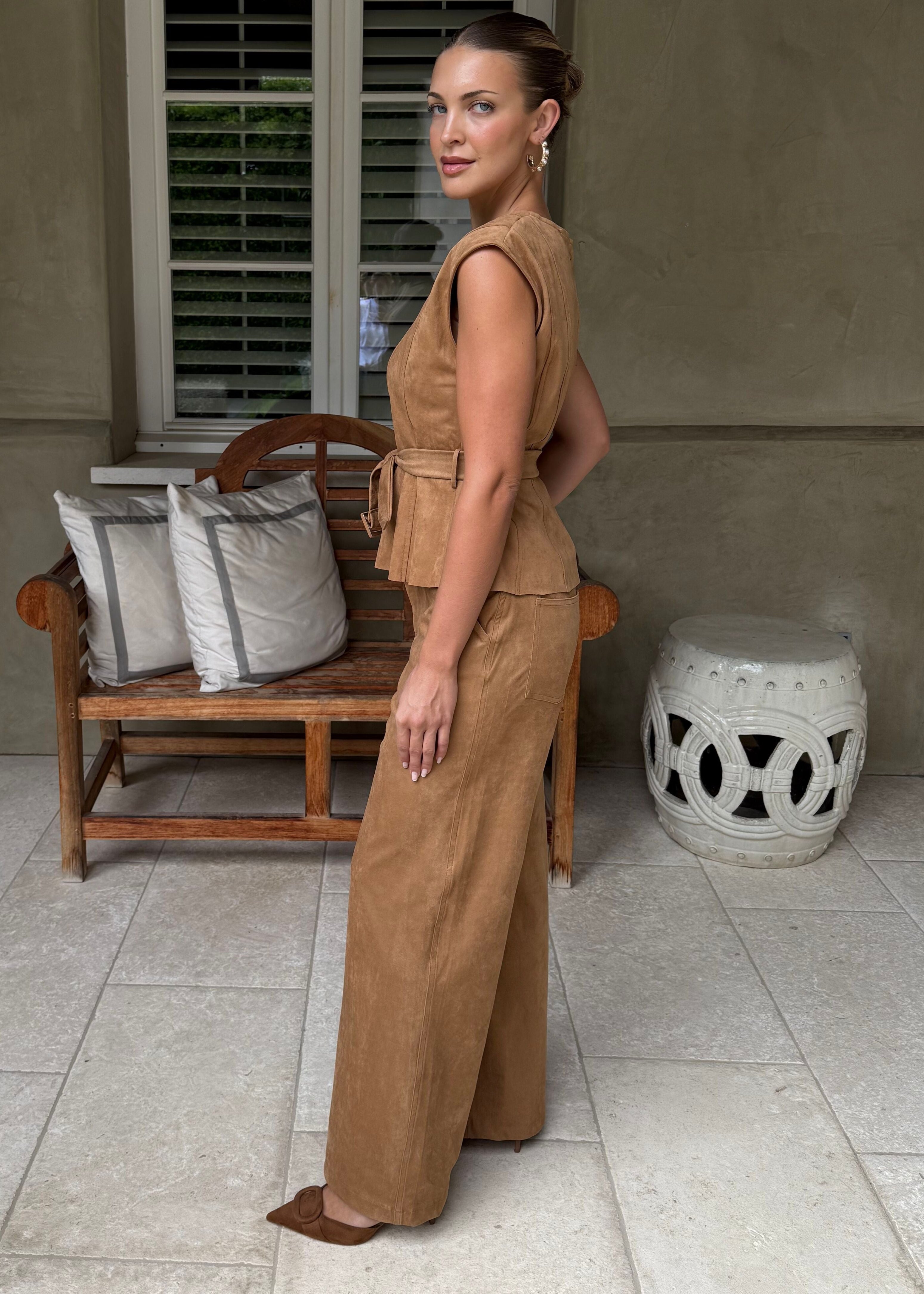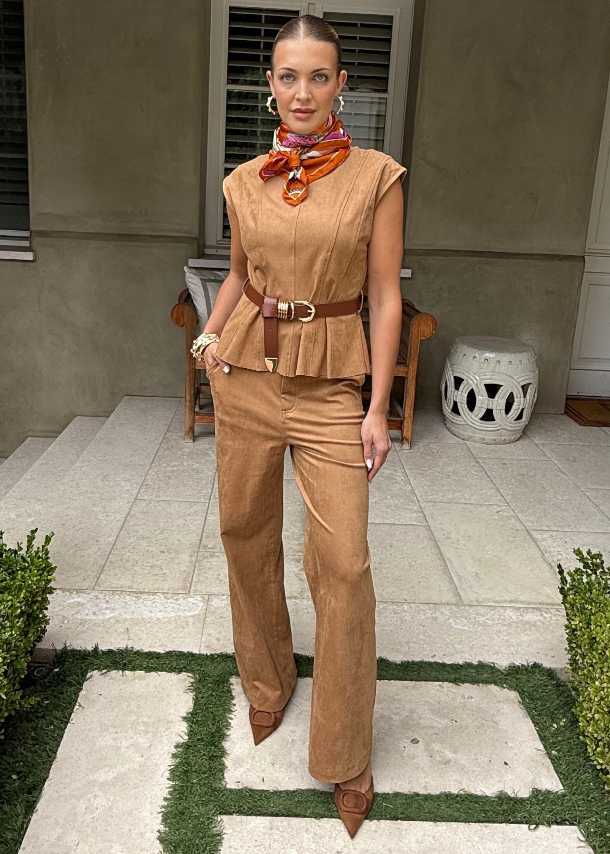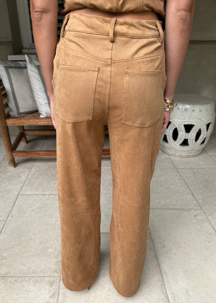 Gwen Suede Straight Leg Pants - Camel