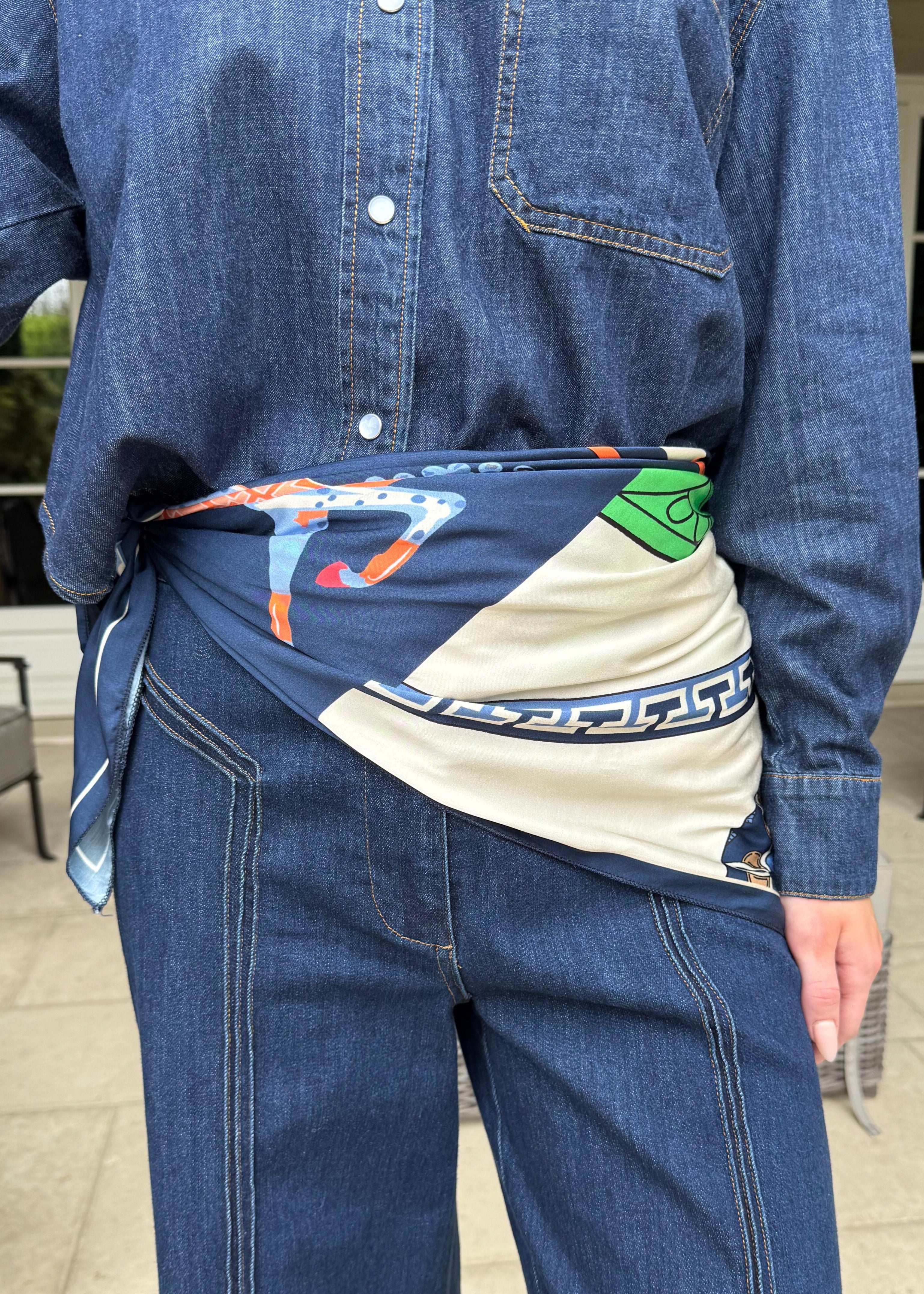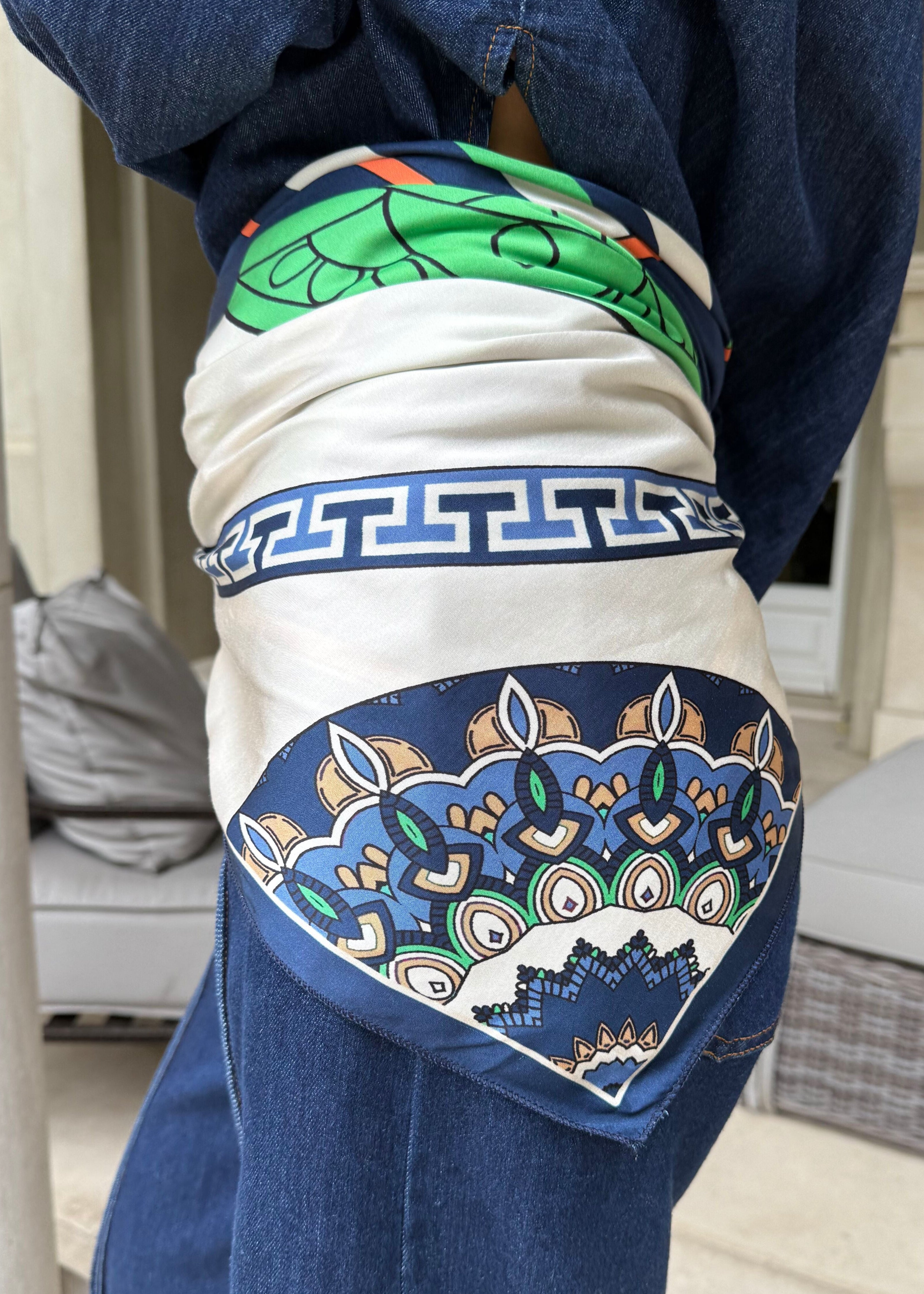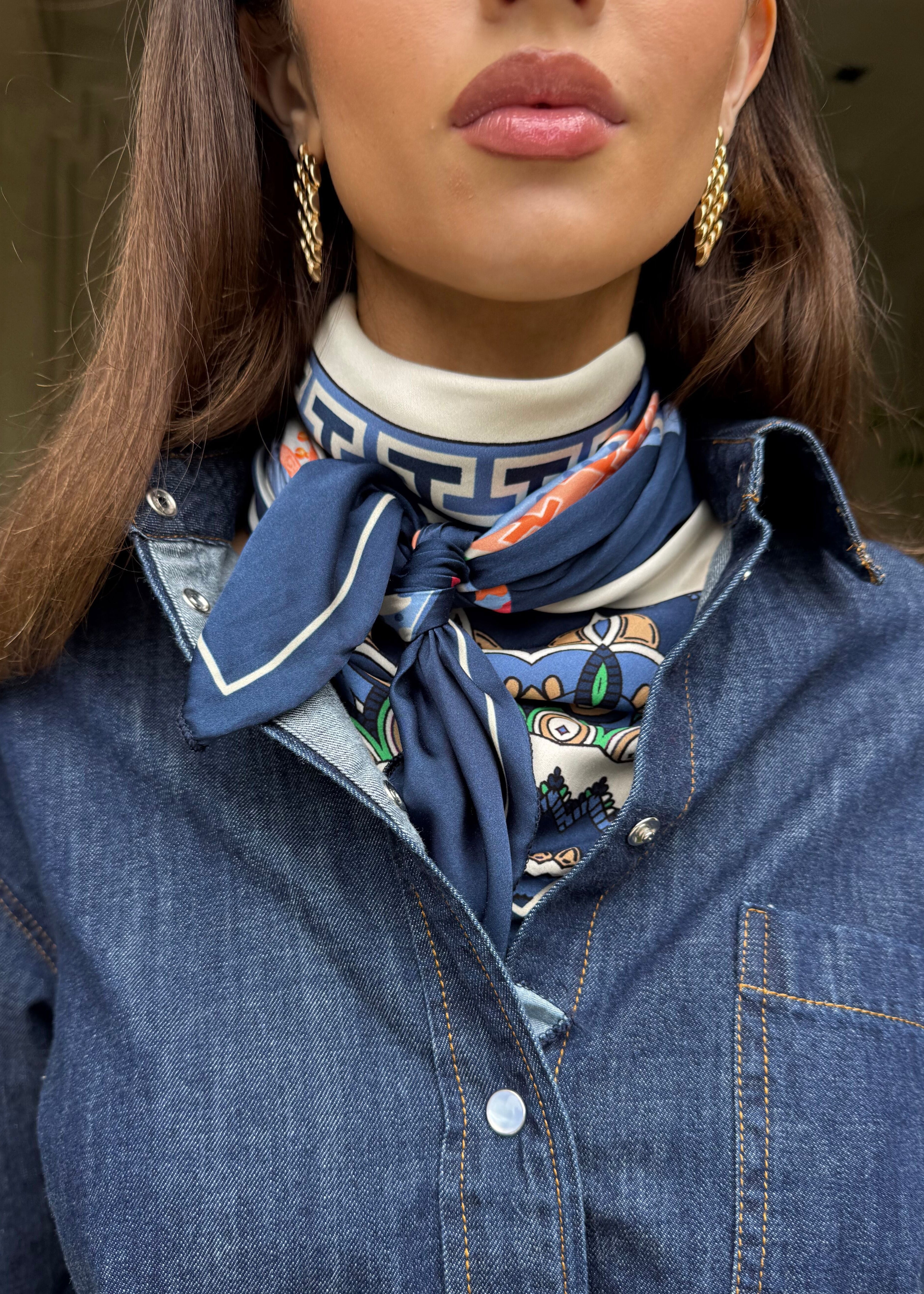 Wrap yourself in a splash of charm with the Collins Geometric Equestrian Print Scarf. This playful accessory adds a splash of bold color and a dash of equestrian flair to any outfit—perfect for turning heads while keeping cozy.