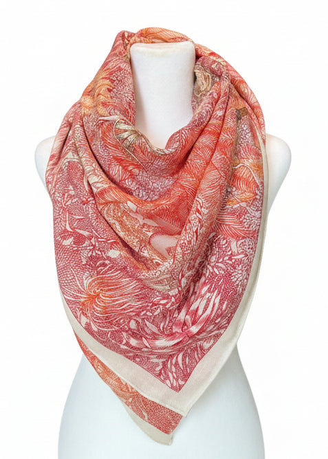 Ravi Cashmere Feeling Multicolor Jungle Print Shawl - Red