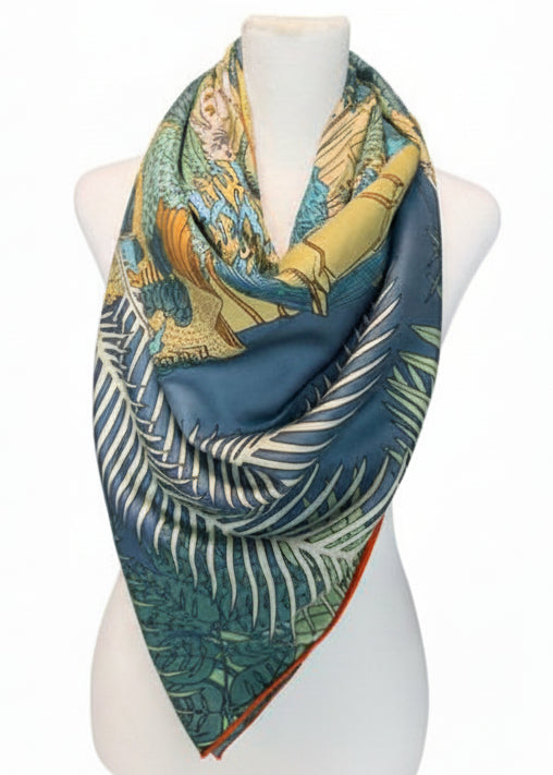 Ravi Cashmere Feeling Multicolor Jungle Print Shawl - Teal and yellow