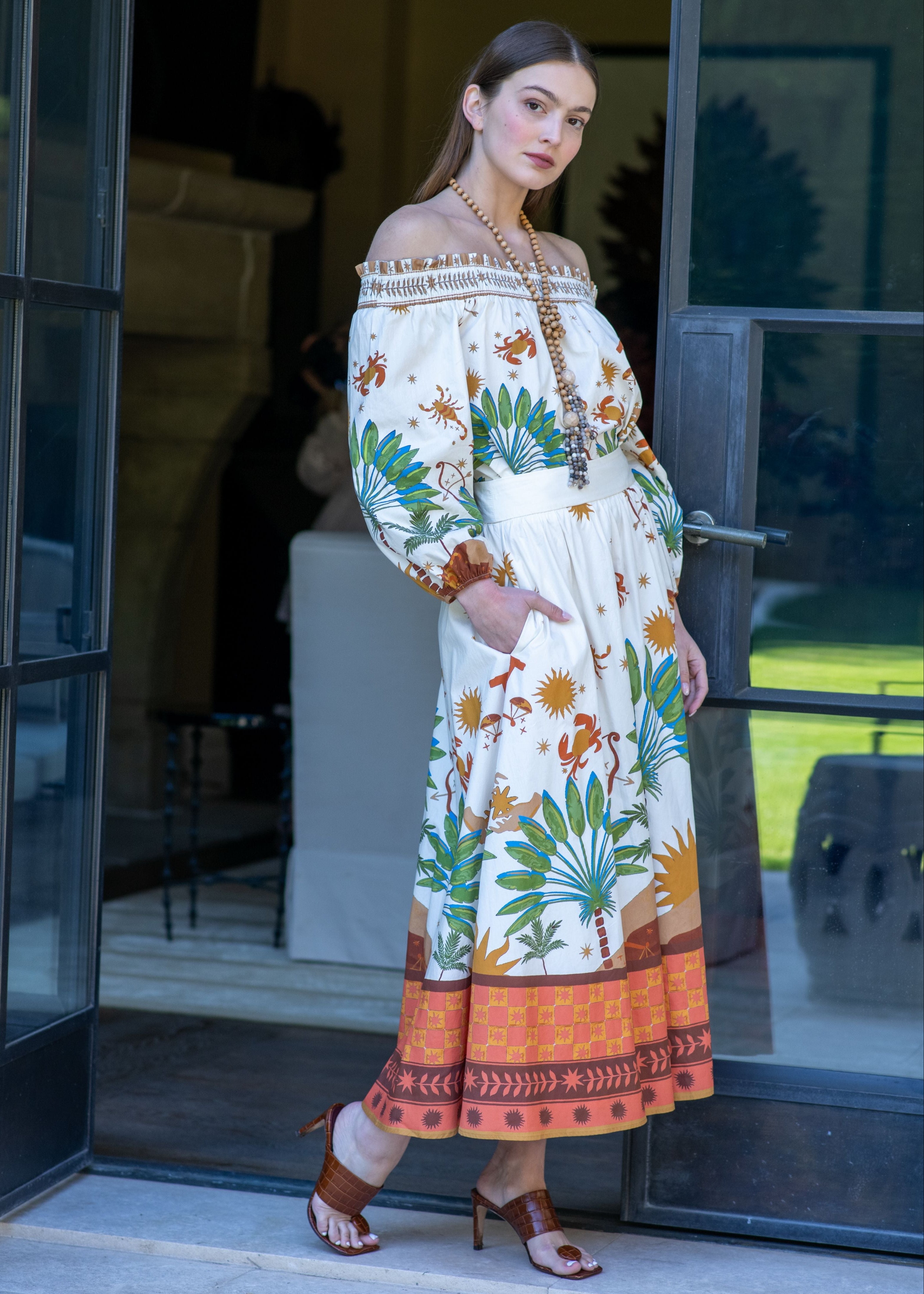 Cairo High Waisted Multicolor Printed Midi Skirt