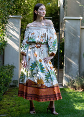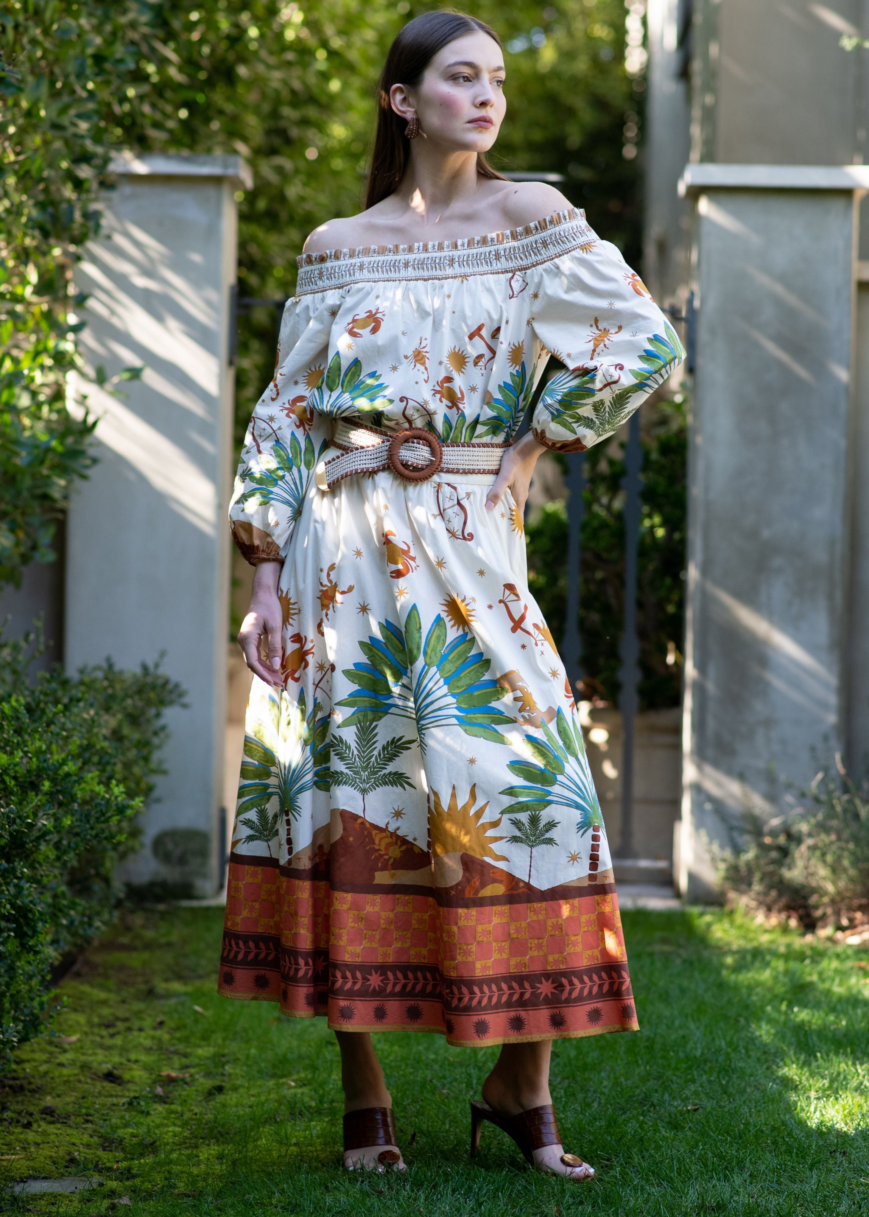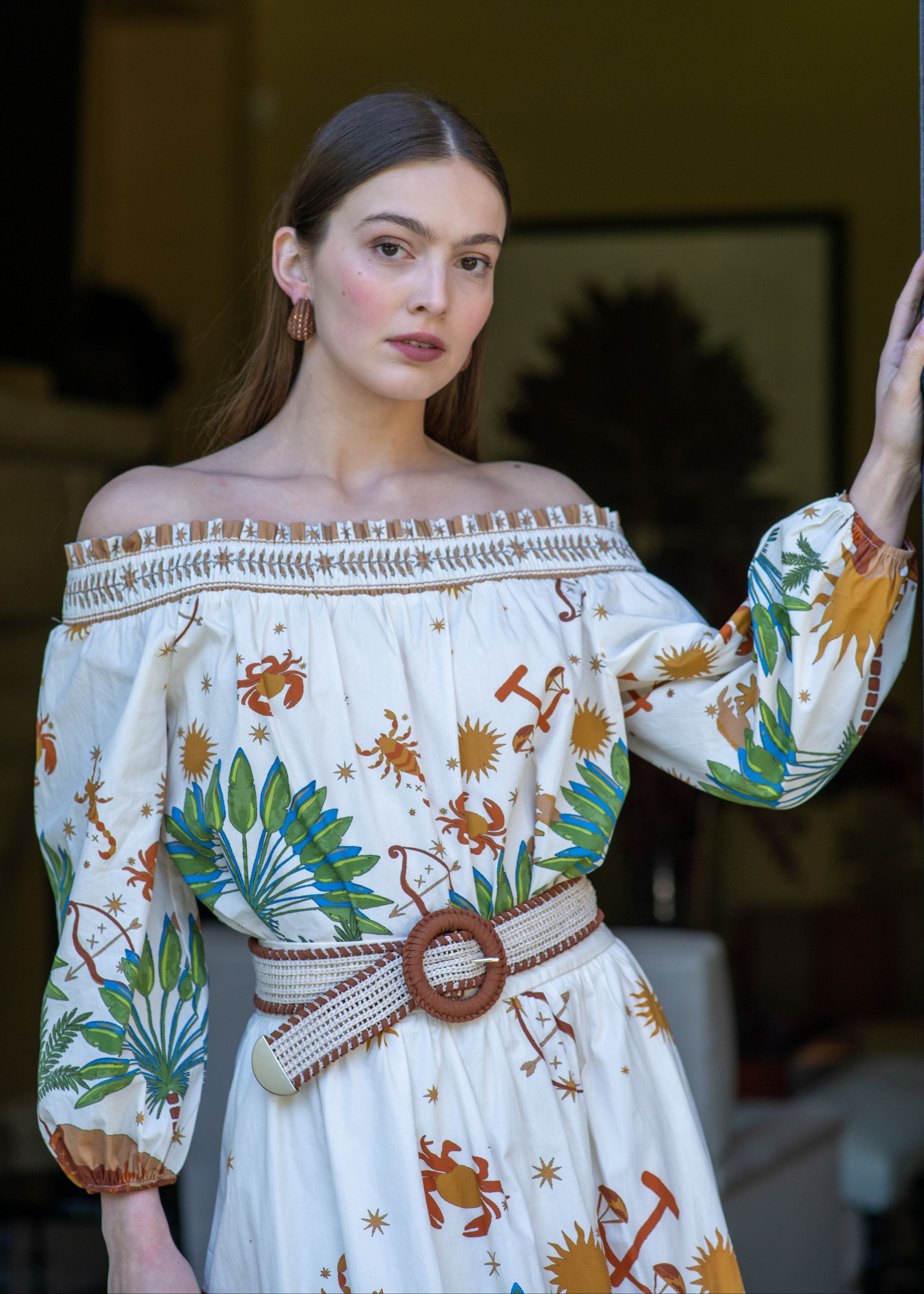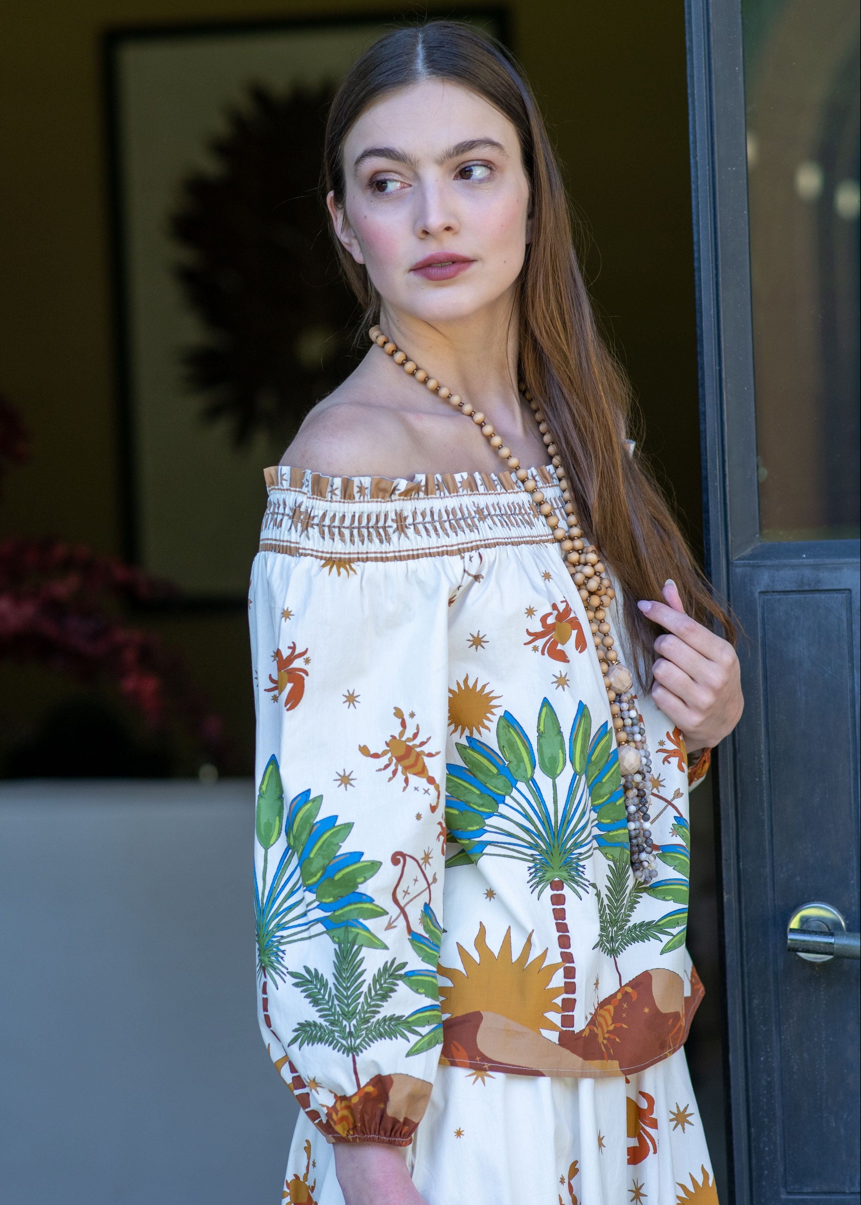 Escape to Cairo with this vibrant off-the-shoulder top! Bursting with multicolor prints, it's the perfect piece to turn heads and spark conversations. Slip it on for instant vacation vibes, whether you're heading to brunch or a night out. Playful, bold, and unapologetically fun.