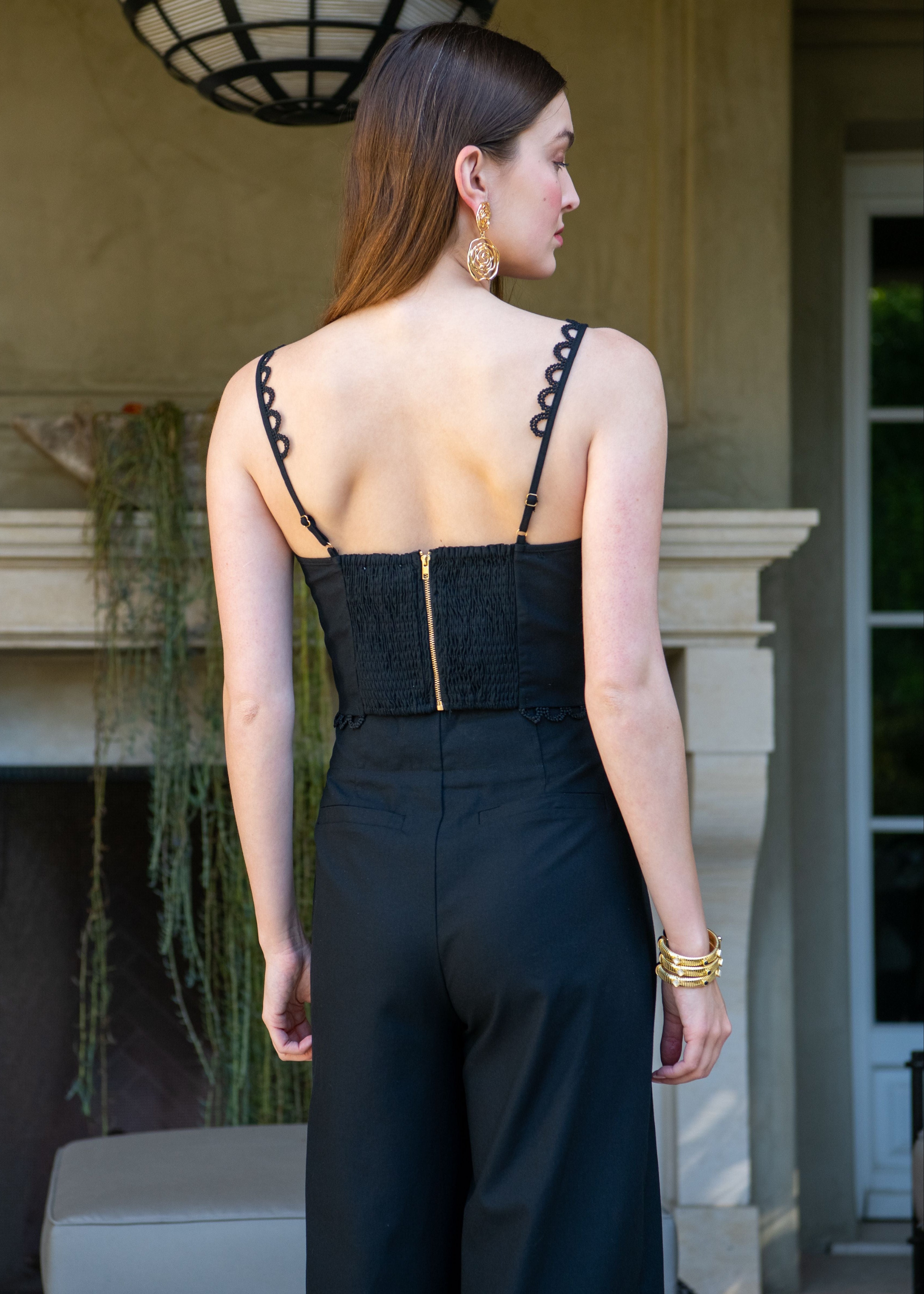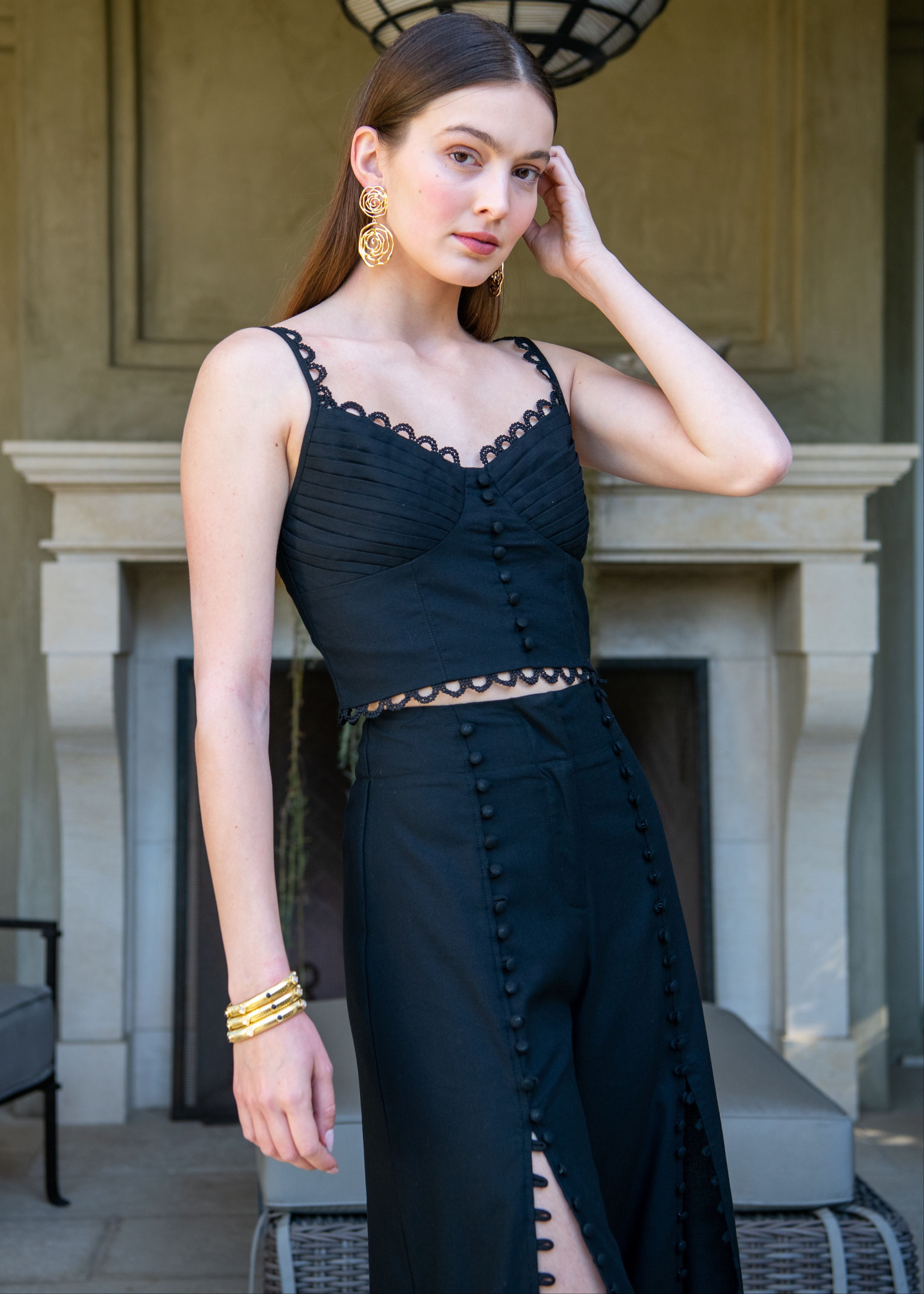 Ellie Embroidered Scallop Trim Button-front Crop Top