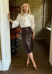 Janine Wrap Neck Long Sleeve Knit Scarf Top - Coffee Brown