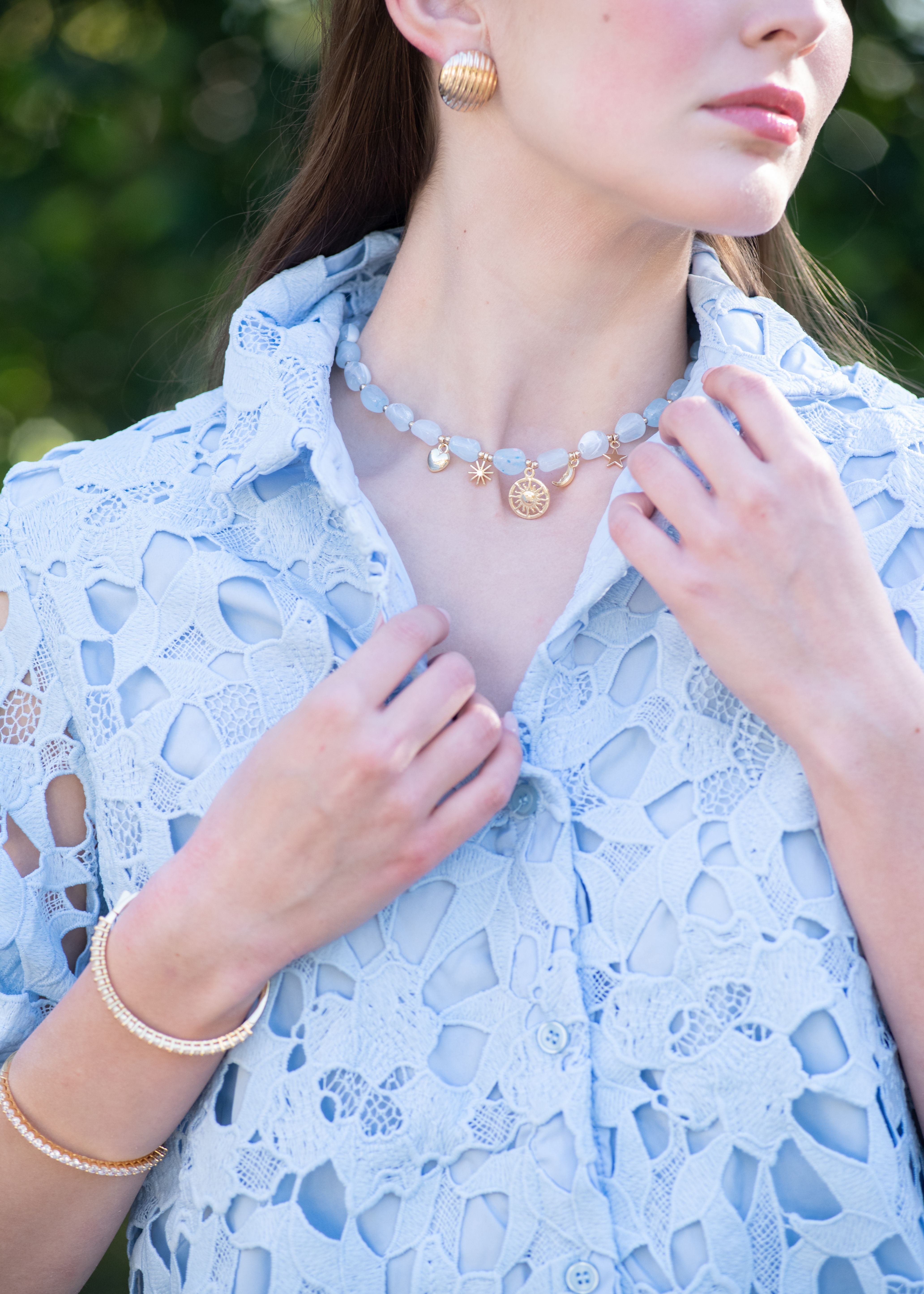 Carla Collared Button Down Short Sleeve Lace Top - Light Blue