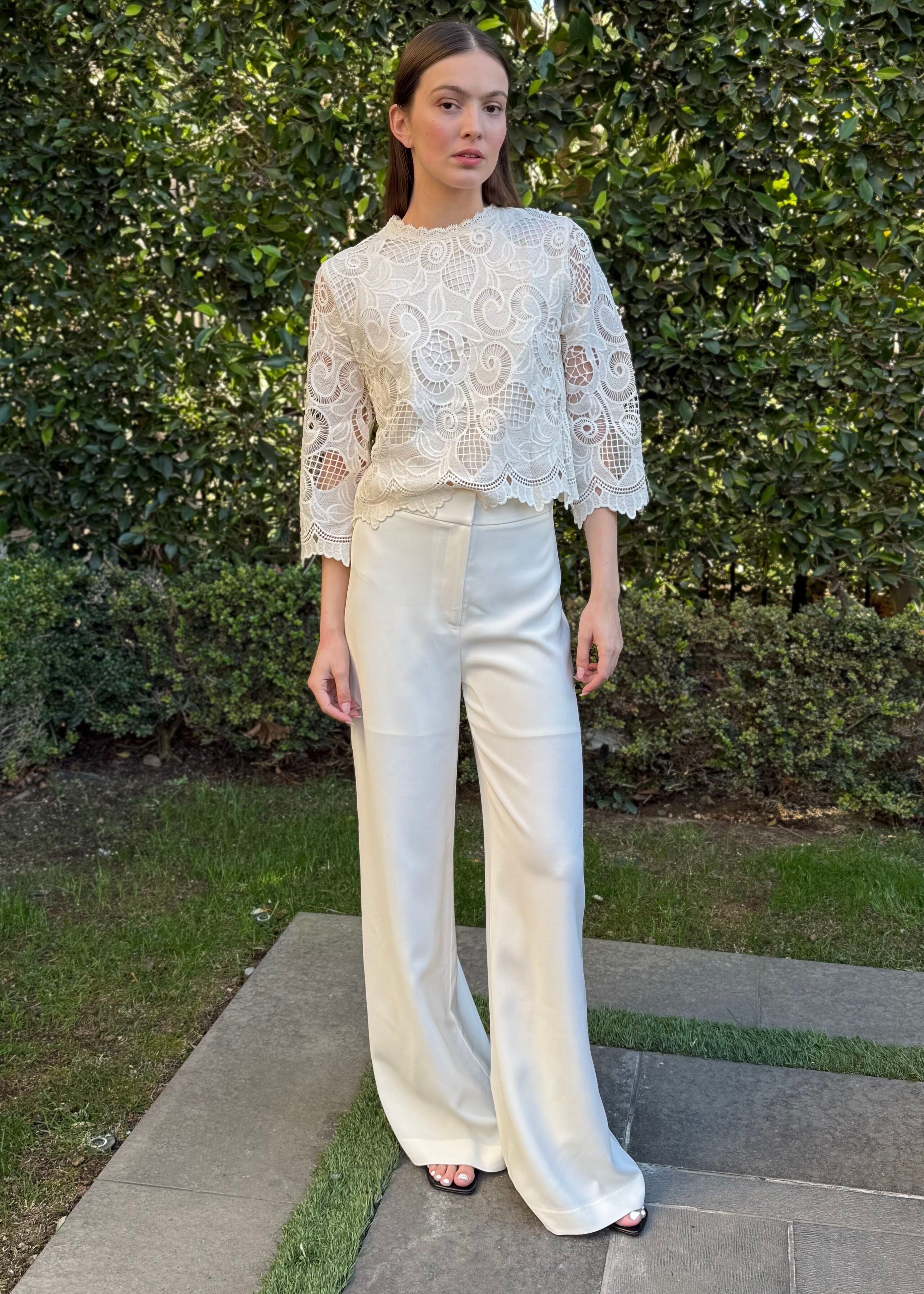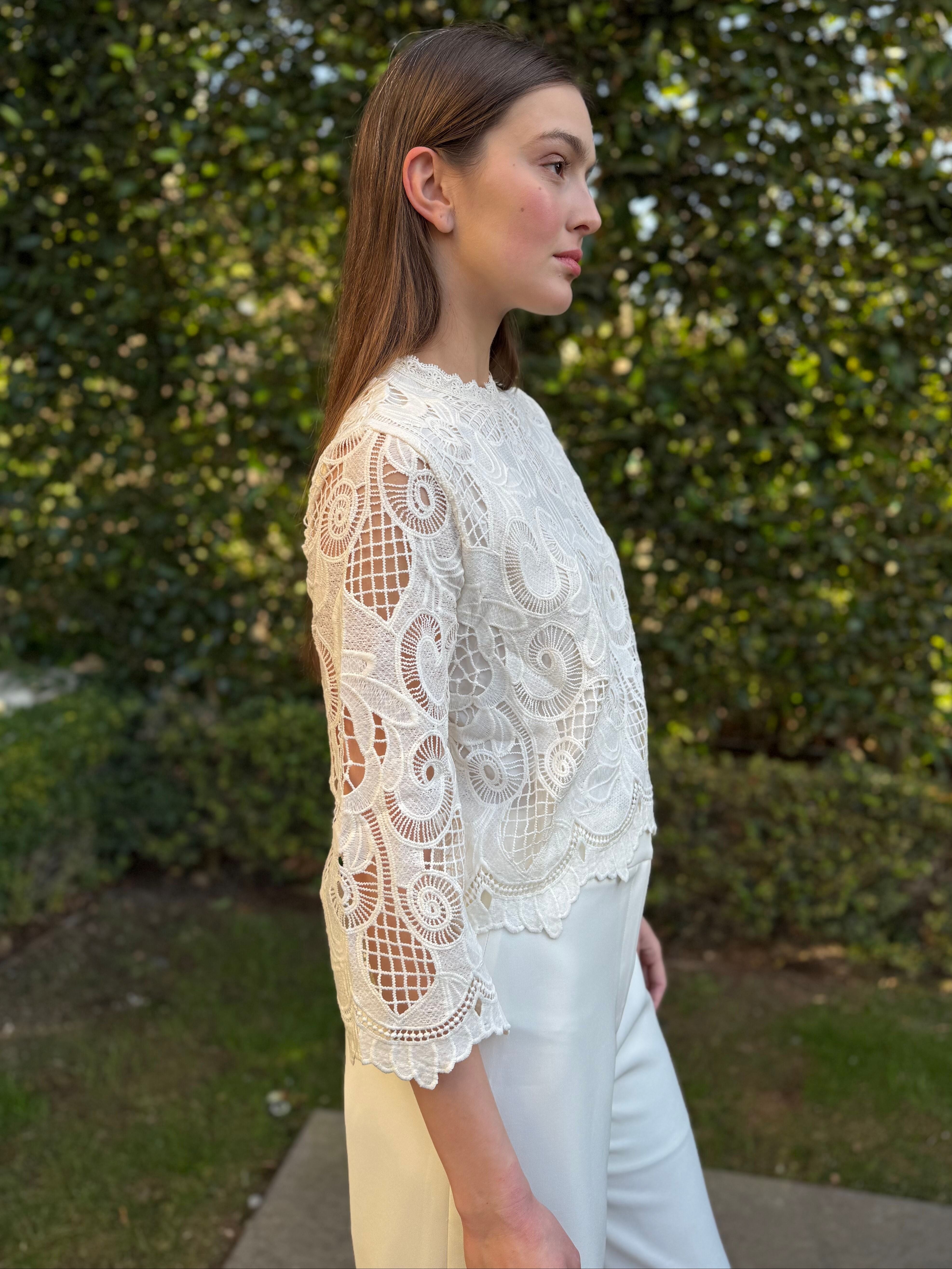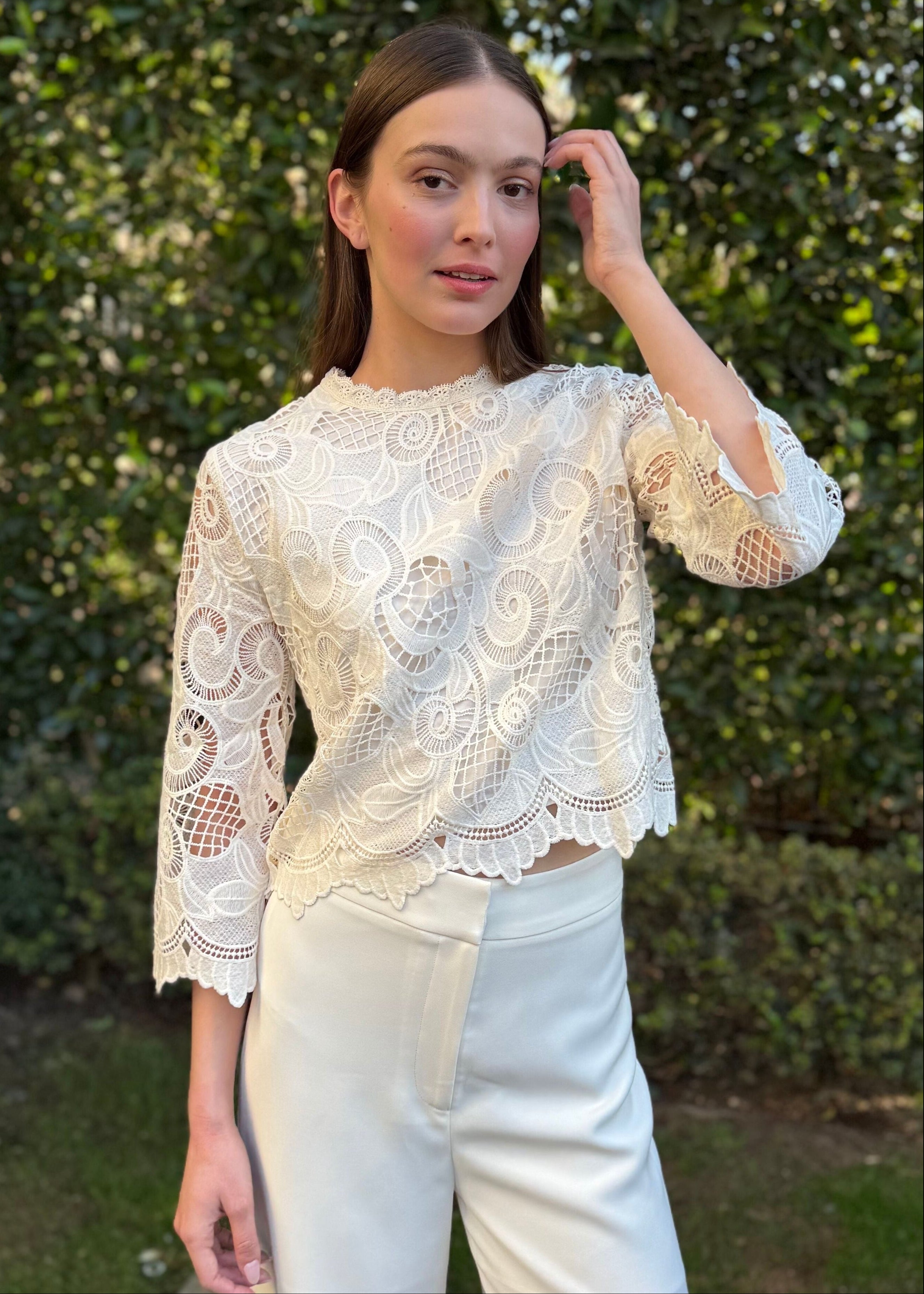 Jocelyn Abstract Lace 3/4 Flare Sleeve Top - Cream