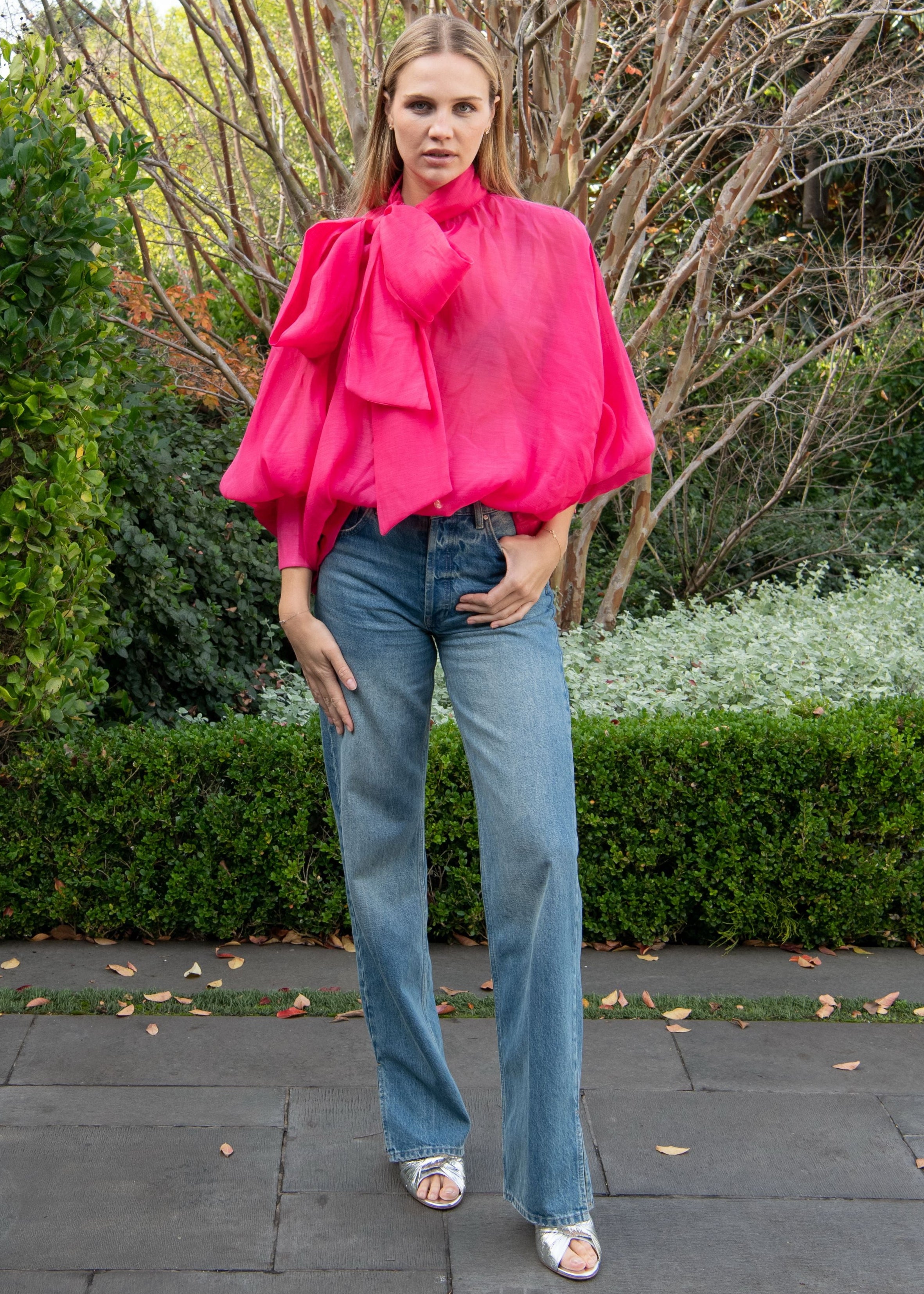 Make a statement in this vibrant pink oversized top, where an eye-catching neck bow tie detail steals the show. Perfect for anyone who loves bold fashion with a touch of whimsy, this piece transforms an everyday look into something fun and unforgettable. Pair it with your favorite jeans or dress it up for a night out—either way, you'll turn heads.