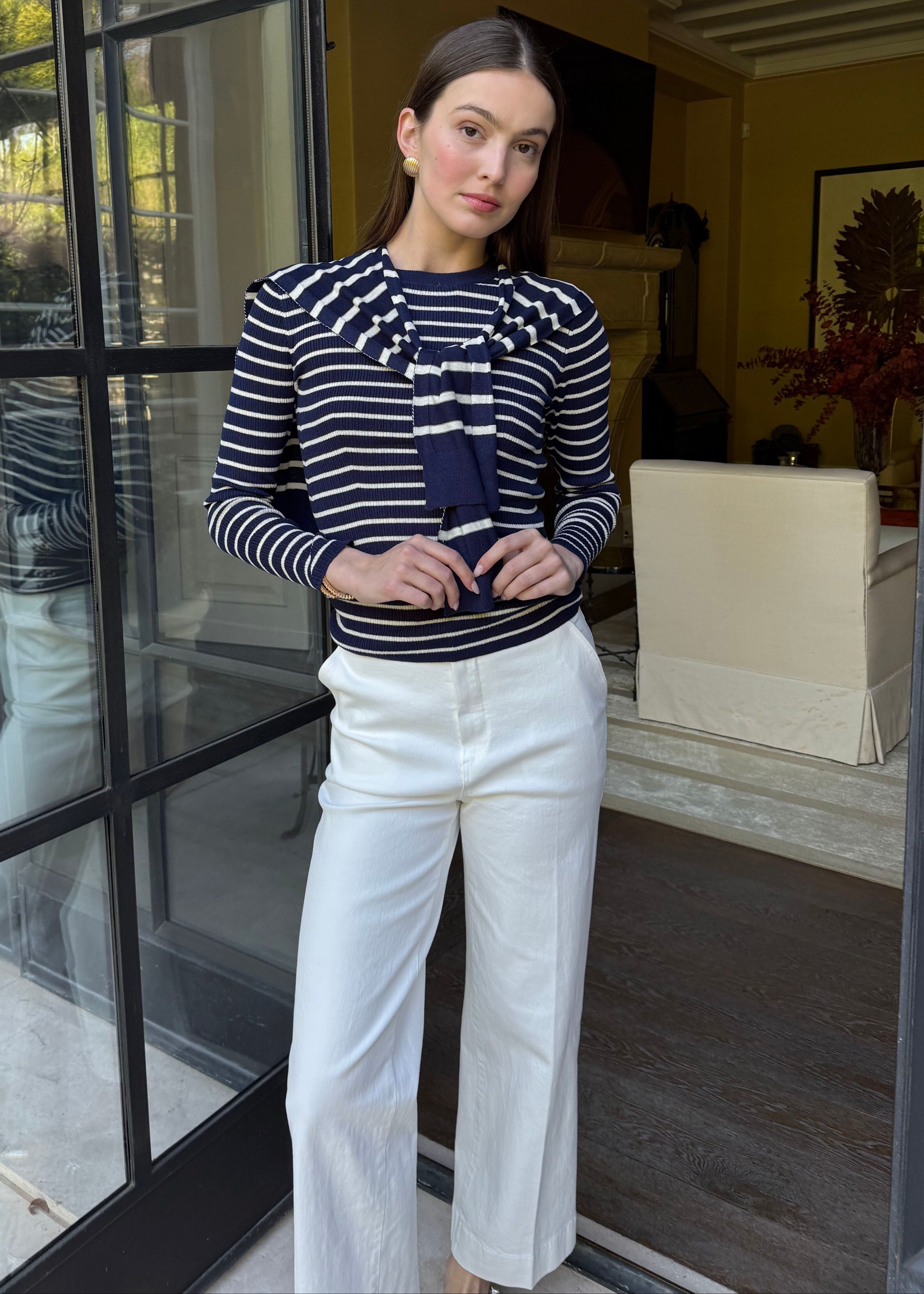 Stacy Striped Sweater with Faux Cardigan - Navy and White