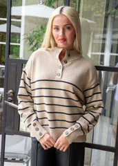 Stripes meet sophistication in this navy and white sweater that doubles as a faux cardigan—because who says you can't have layered style without the extra bulk? Throw it on for instant polish with zero fuss.