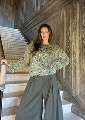These pants offer a luxurious look and feel without harming animals. With a wide leg design and trendy olive color, these pants are perfect for any occasion. Upgrade your style with these stylish pants.