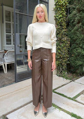 Ryan Wide Leg Vegan Leather Pants - Olive