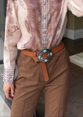 Colton Silver Floral Concho Buckle Vegan Suede Belt - Brown