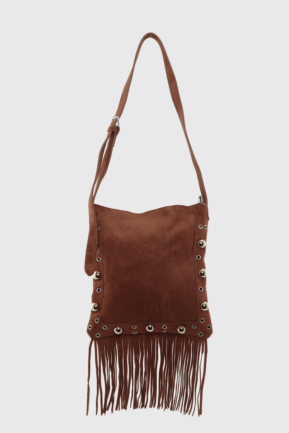 Dallas Western Boho Vegan Suede Crossbody Bag - Camel