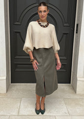 Gwen Suede Belted Cap Sleeve Peplum Top - Camel
