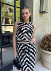 Brenda Cream and Black Crochet Fringed Maxi Skirt