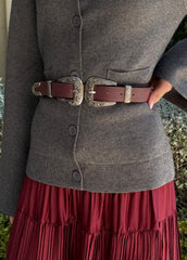 Elevate your ensemble with the Esperanza Elastic Stretch Belt in a deep burgundy Featuring a refined horse bit buckle, this sophisticated accessory combines timeless equestrian elegance with comfortable stretch fabric for a flattering fit. Perfect for adding a polished touch to both casual and formal looks.