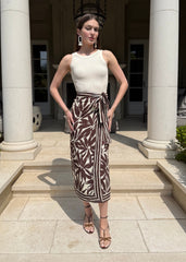Elevate your wardrobe with the Kasia Geometric Print Wrap Style Long Skirt. This sophisticated piece features a striking geometric pattern and flattering wrap design that creates an elegant silhouette. Crafted with precision, the flowing length offers versatility for both casual and formal occasions.