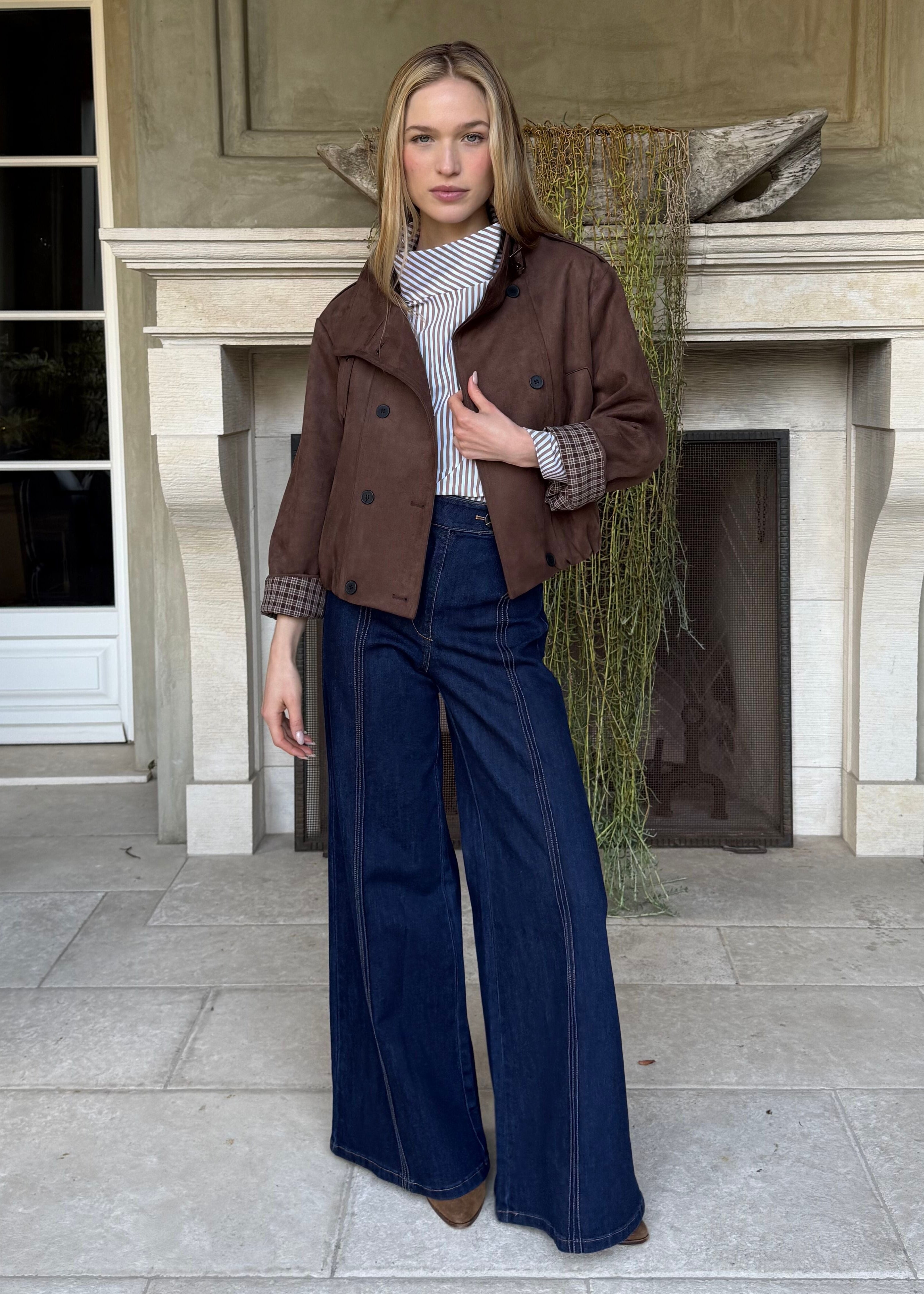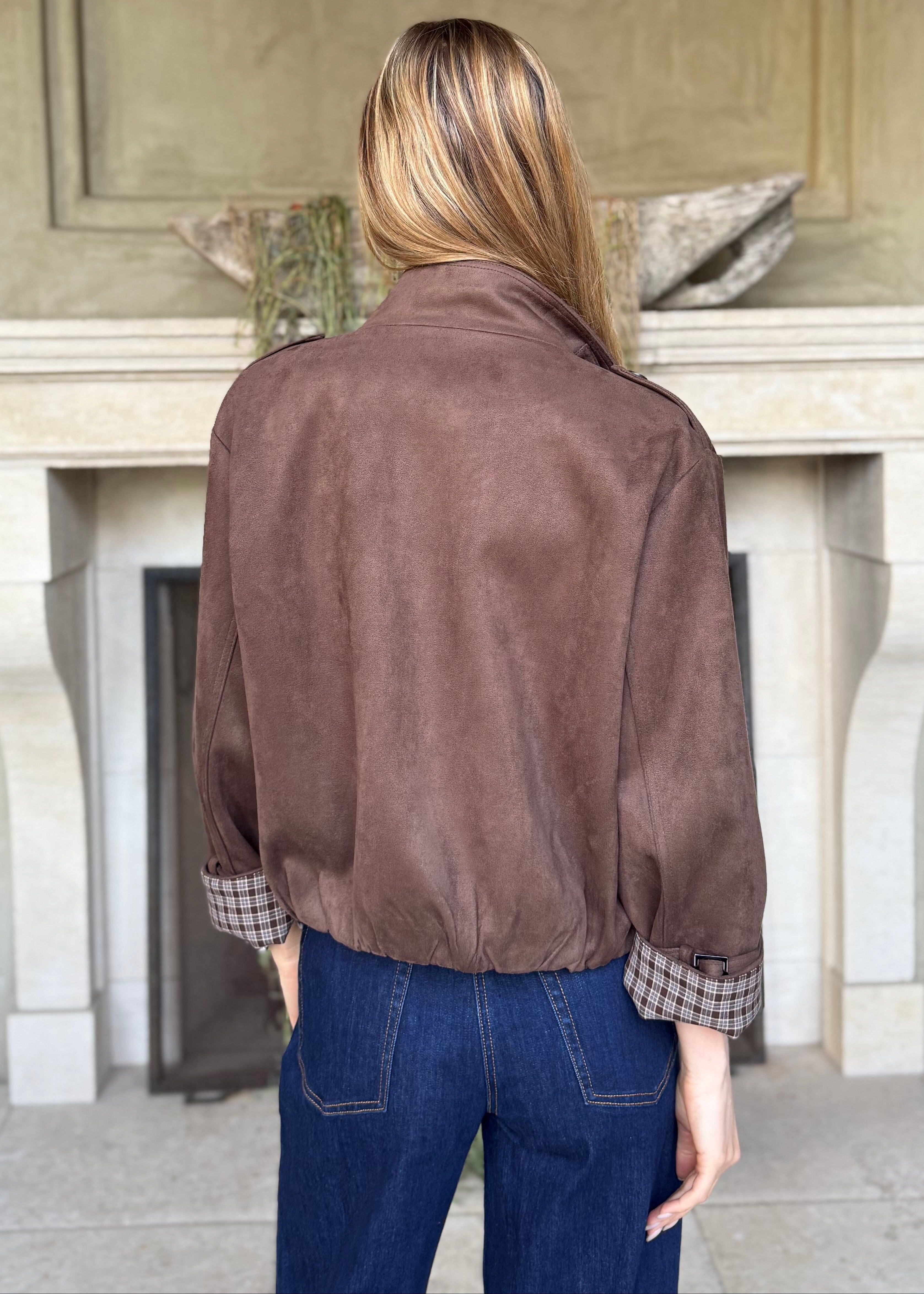 The Angela Cropped Vegan Suede Jacket is the ultimate style shapeshifter—part bomber, part trench, all confidence. Layer it over everything, throw it on for instant polish, or wear it solo for pure attitude. One jacket, endless possibilities.