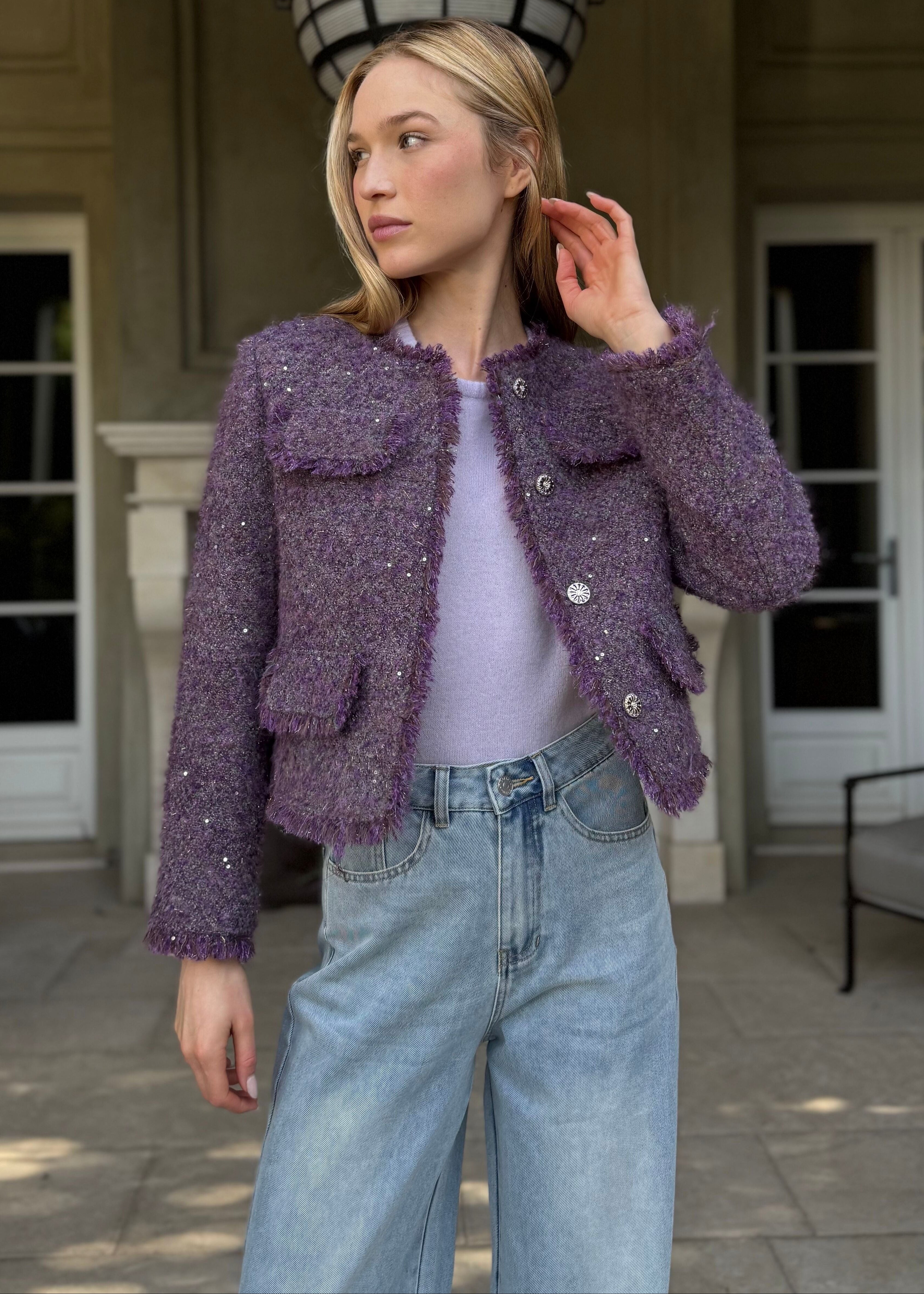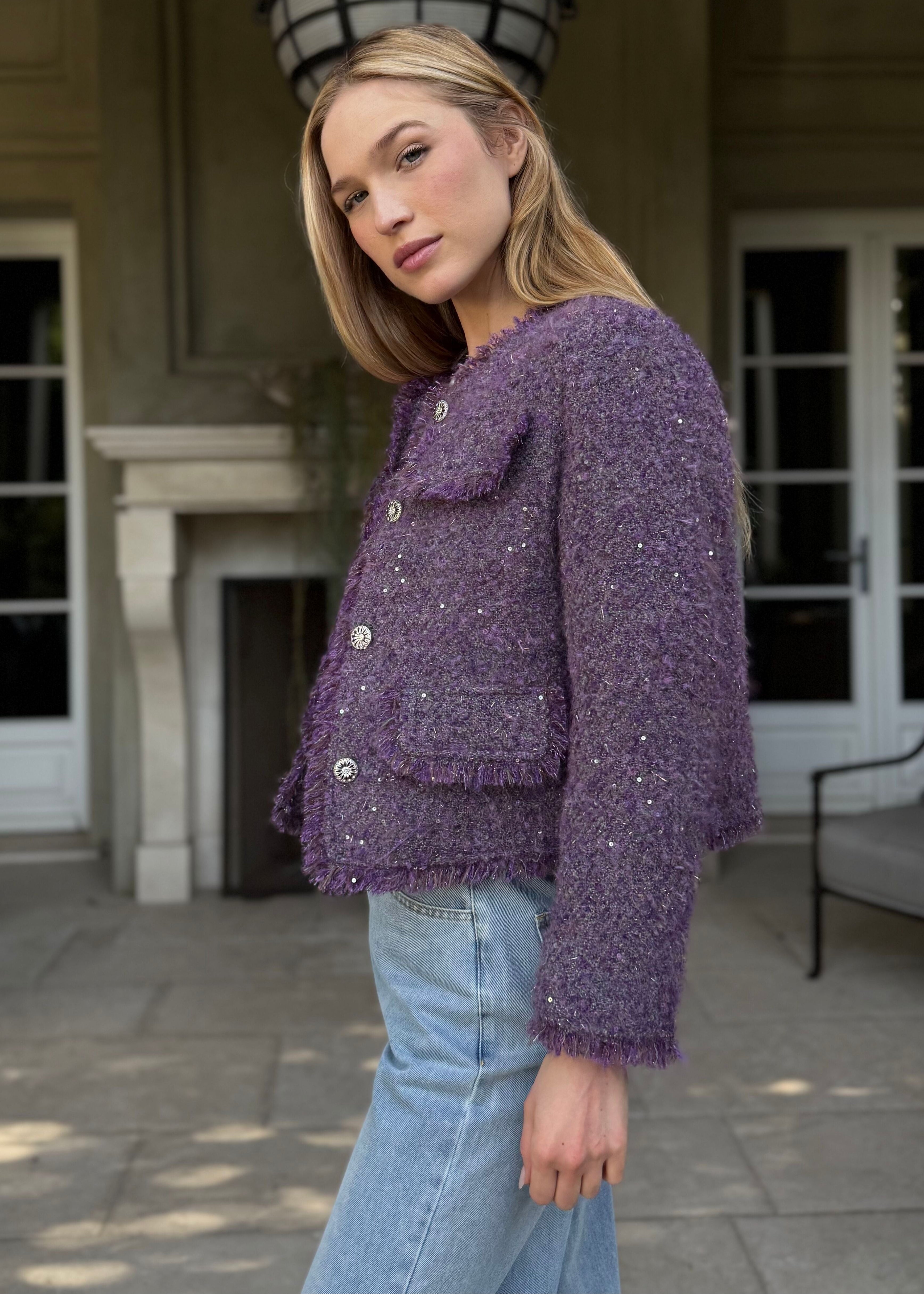 Anine Purple Sequin Embellished Shag Lady Jacket
