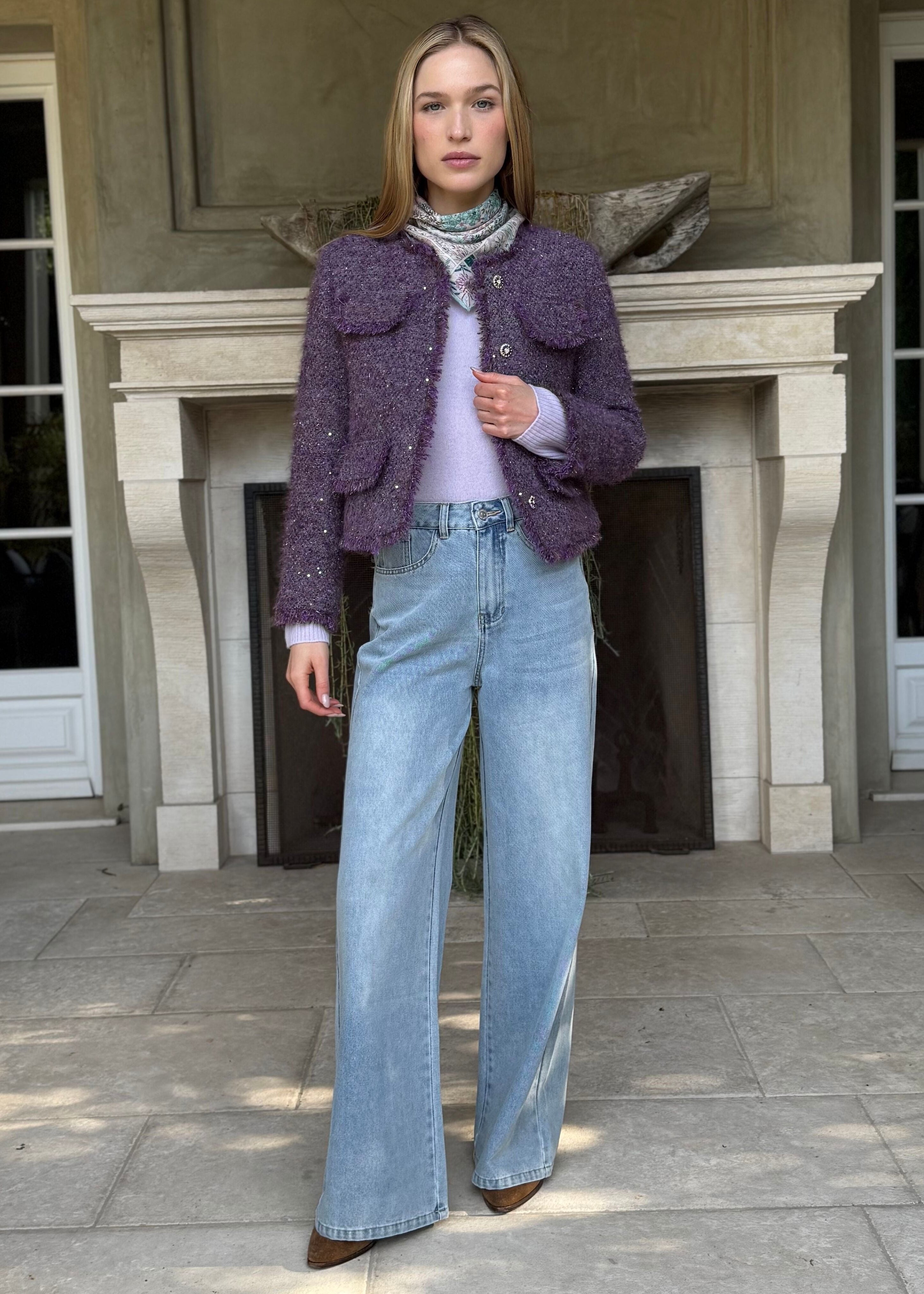 This show-stopping piece layers luxe texture with eye-catching sequin details for a look that demands attention. The plush shag fabric adds cozy glamour, while the rich purple hue brings sophisticated edge to any outfit. Perfect for nights out, special occasions, or whenever you want to turn heads and feel fabulous.