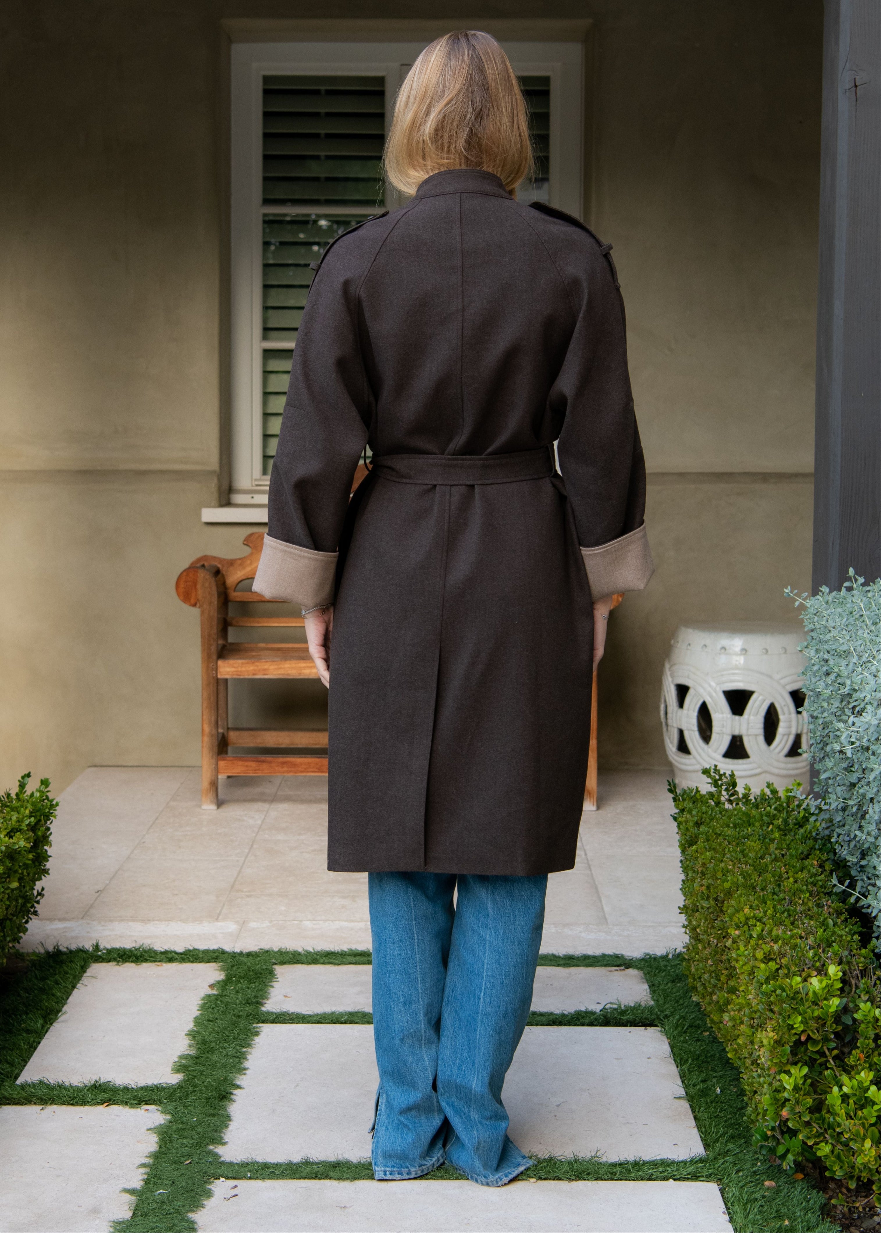 Meet your new go-to coat—soft, luxe, and ready for anything. This belted trench features a sumptuous wool-blend fabric that feels as good as it looks, with a structured silhouette that flatters every frame. Cream tones paired with rich chocolate brown accents create effortless sophistication, while the cinching belt keeps things polished and put-together. Cozy enough for casual days, chic enough for nights out.