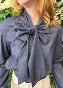 Beverly Denim Blouse with Bow Style Neck