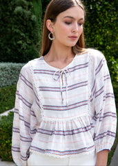 Cyrus Multicolor Patterned Long Sleeve Bow Neck Top
