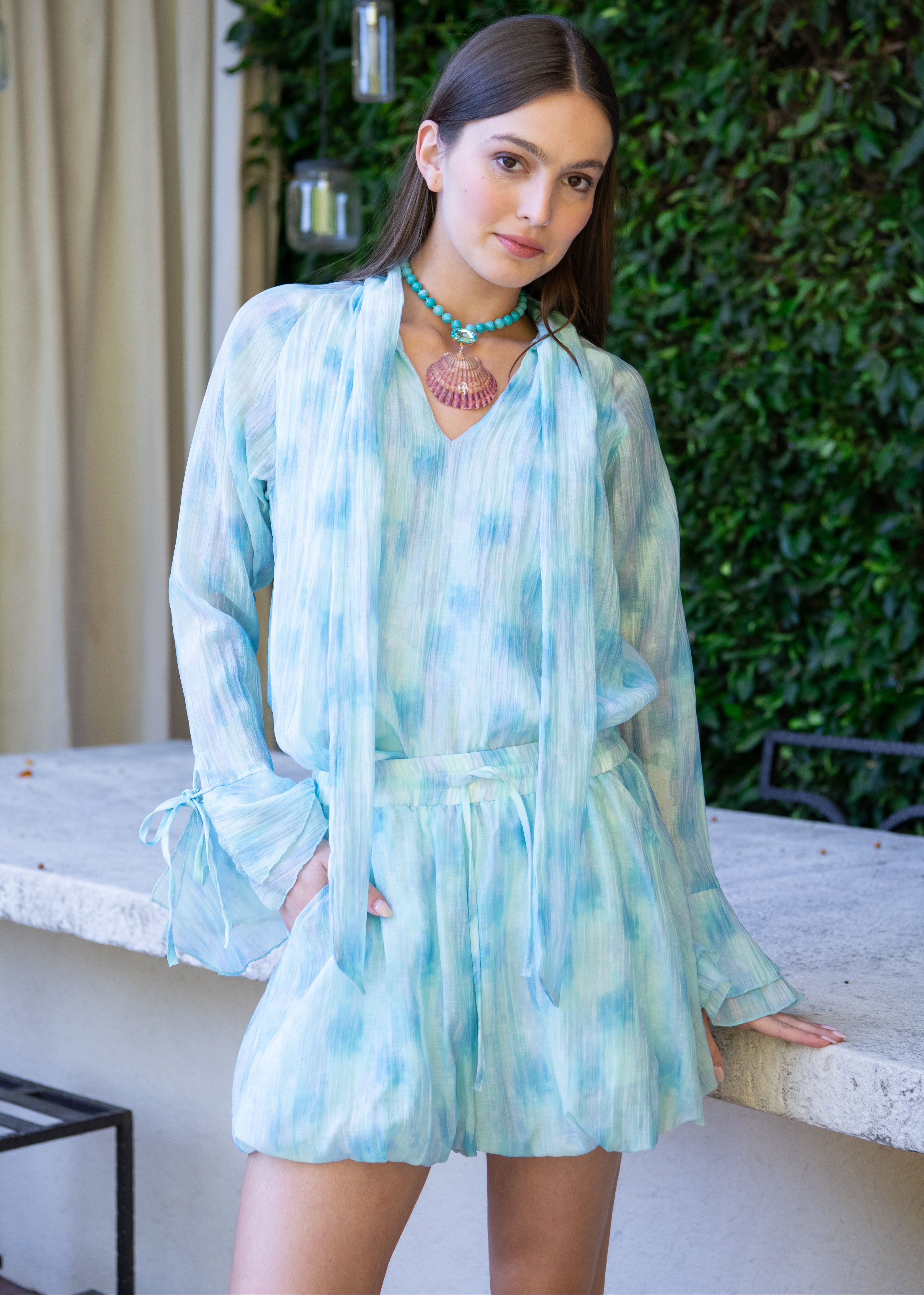 - V shape neckline with bow tie detail