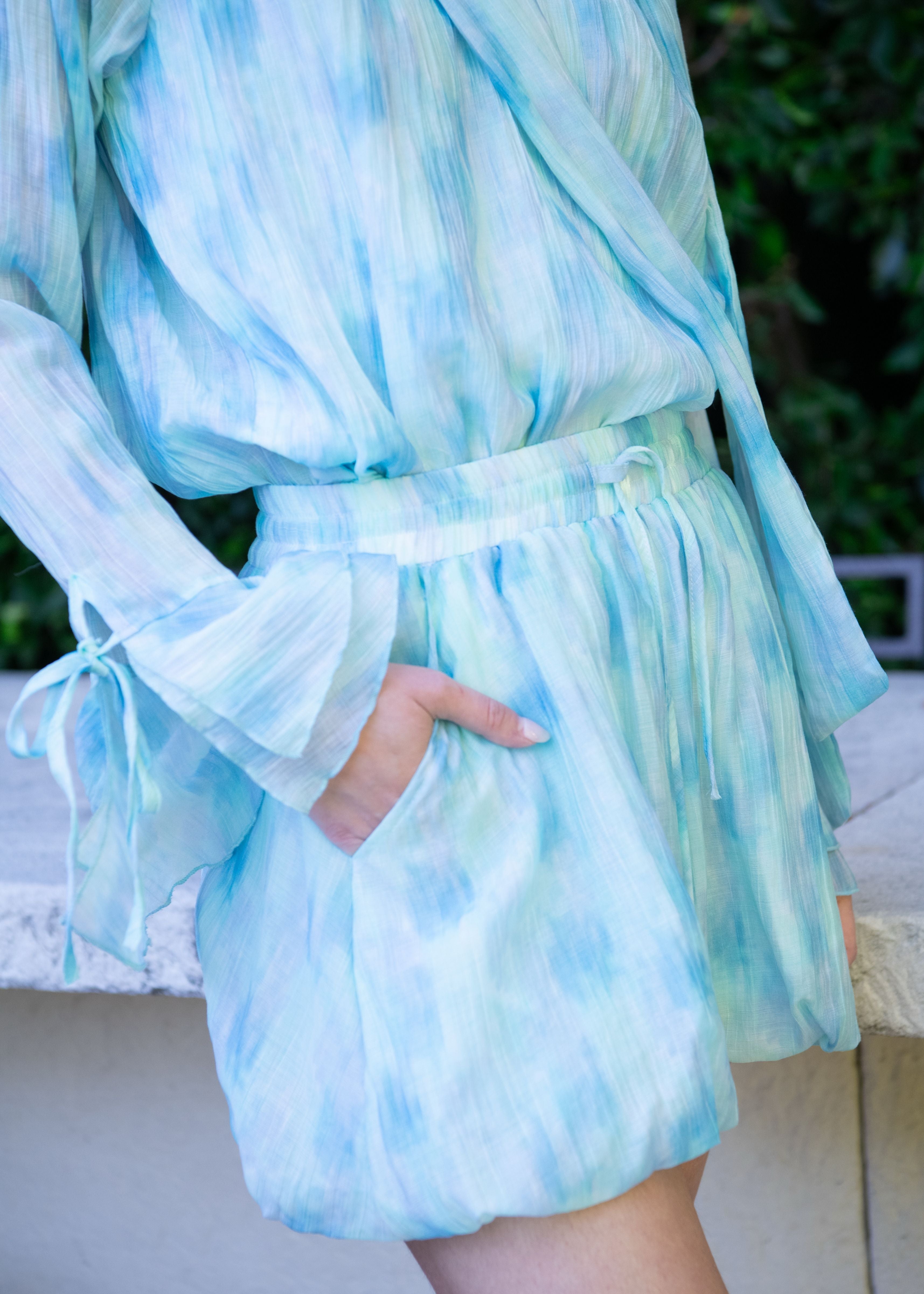 Cyrus Multicolor Patterned Tie Waist Bubble Hem Shorts