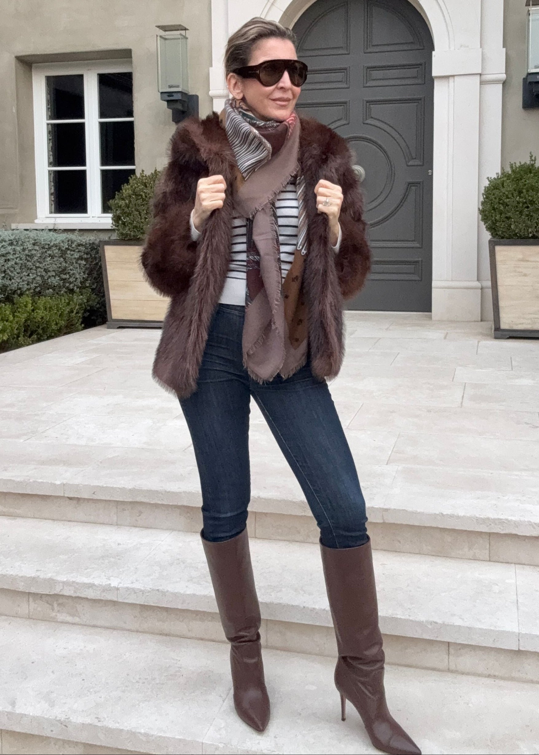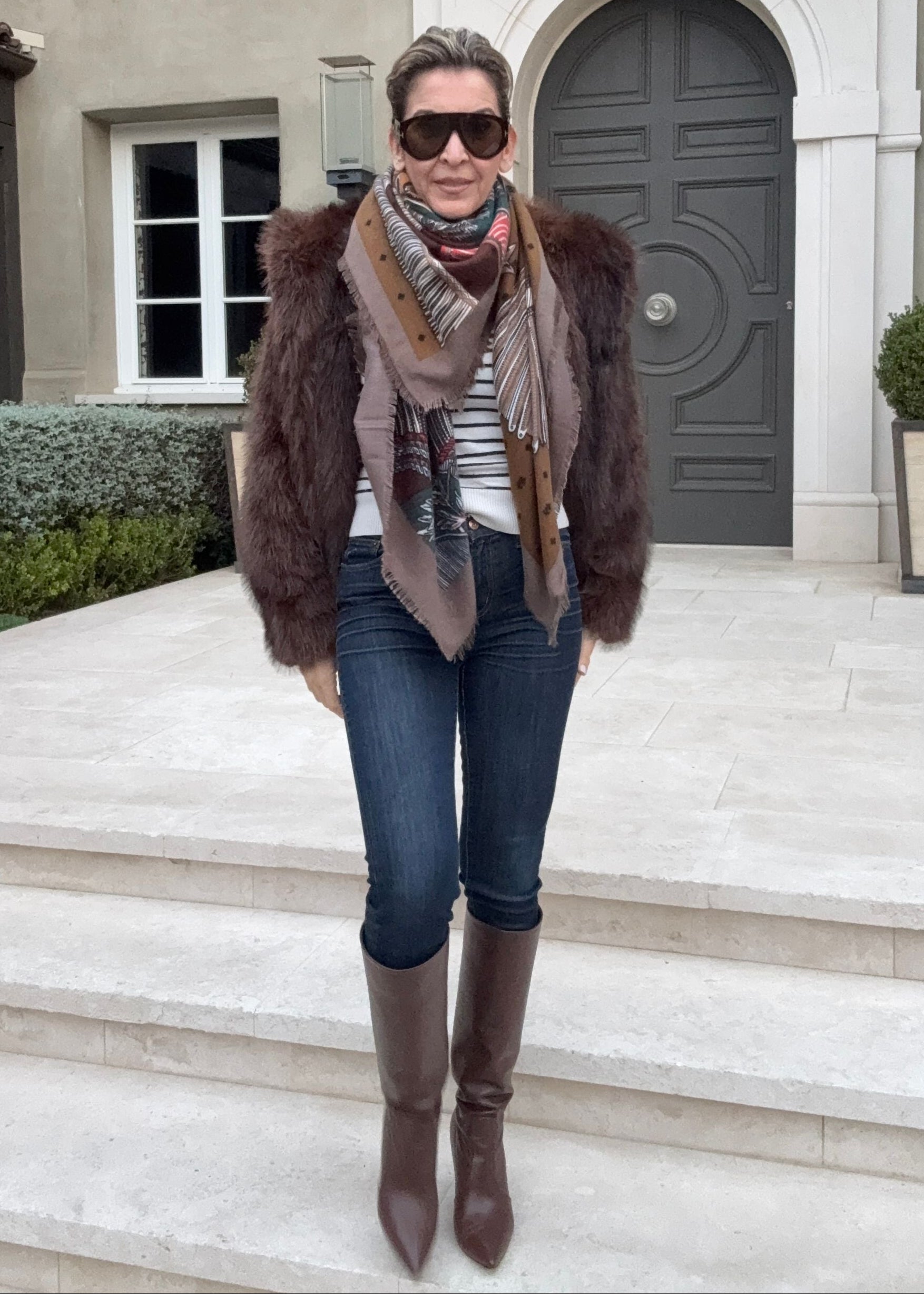 Dania Tassel Print Scarf - Brown