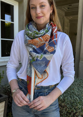 Demi Double Sided Rectangular Silk Scarf - Blue