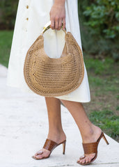 Elliott Woven Raffia Floral Applique Crossbody Bag