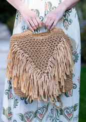 - Woven rattan & floral appliques
