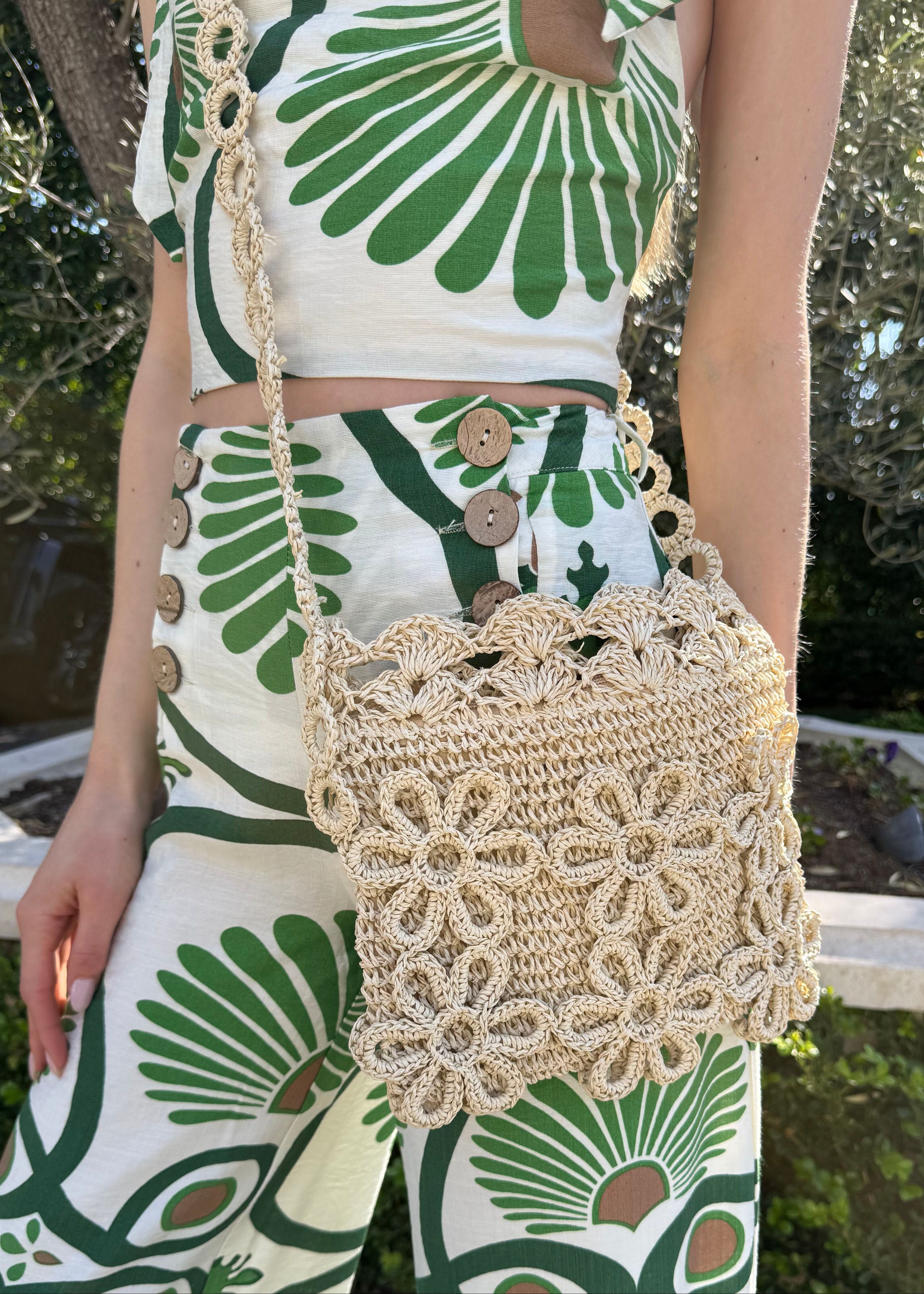 Carry your essentials in style with this charming woven raffia crossbody bag, adorned with a delightful floral applique. Perfect for casual outings, beach days, or whenever you need hands-free convenience without sacrificing flair. Lightweight, versatile, and undeniably fun.