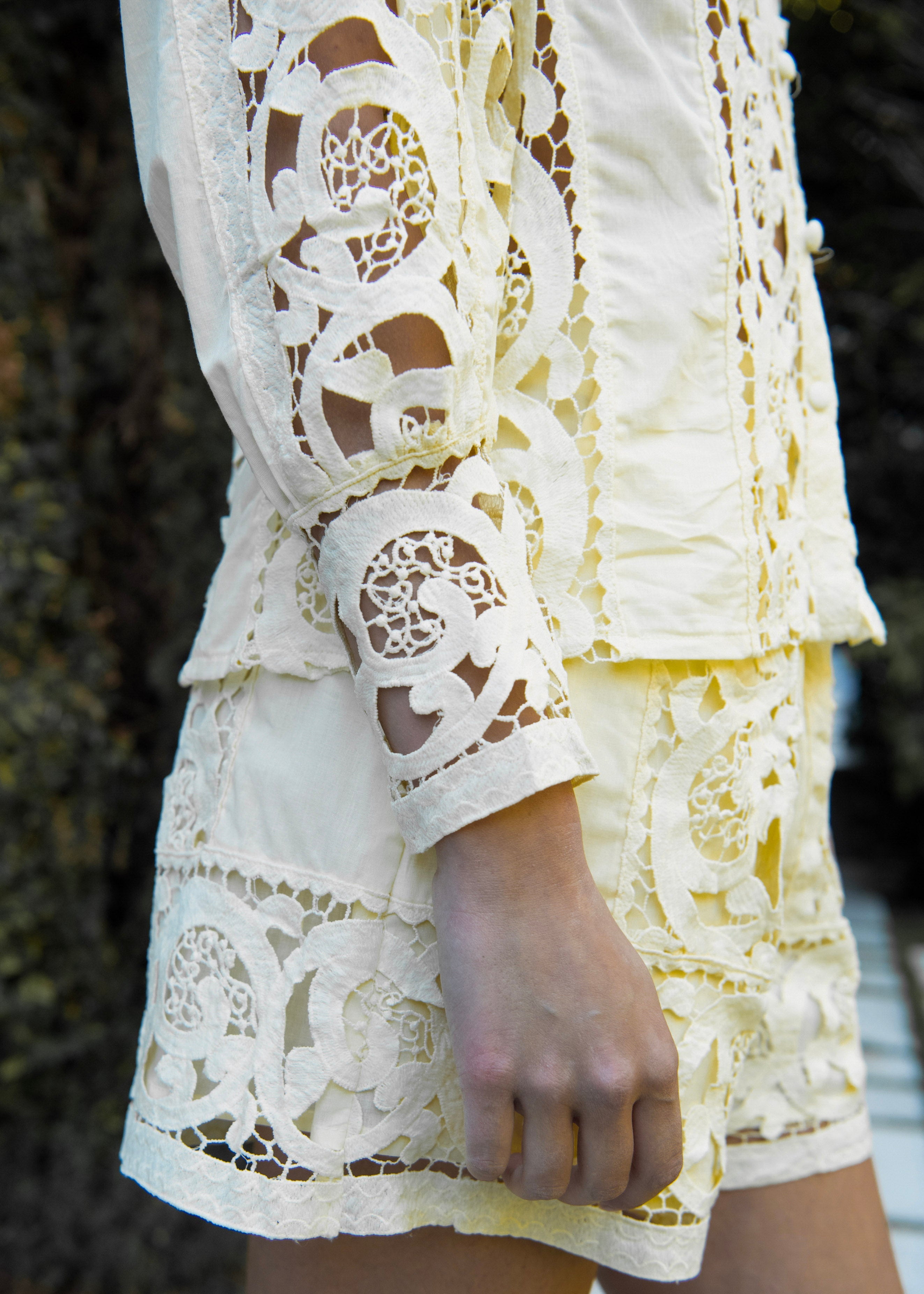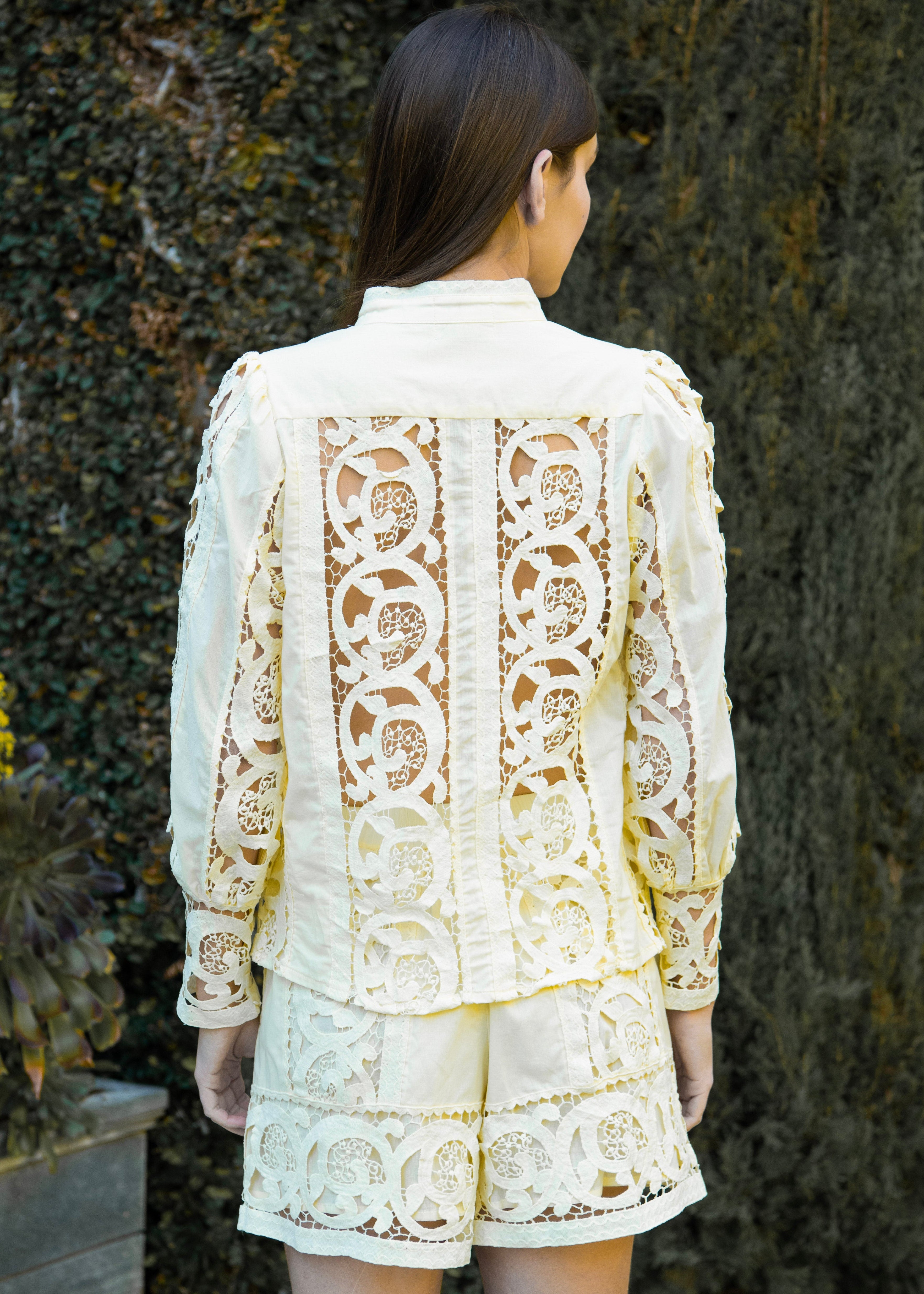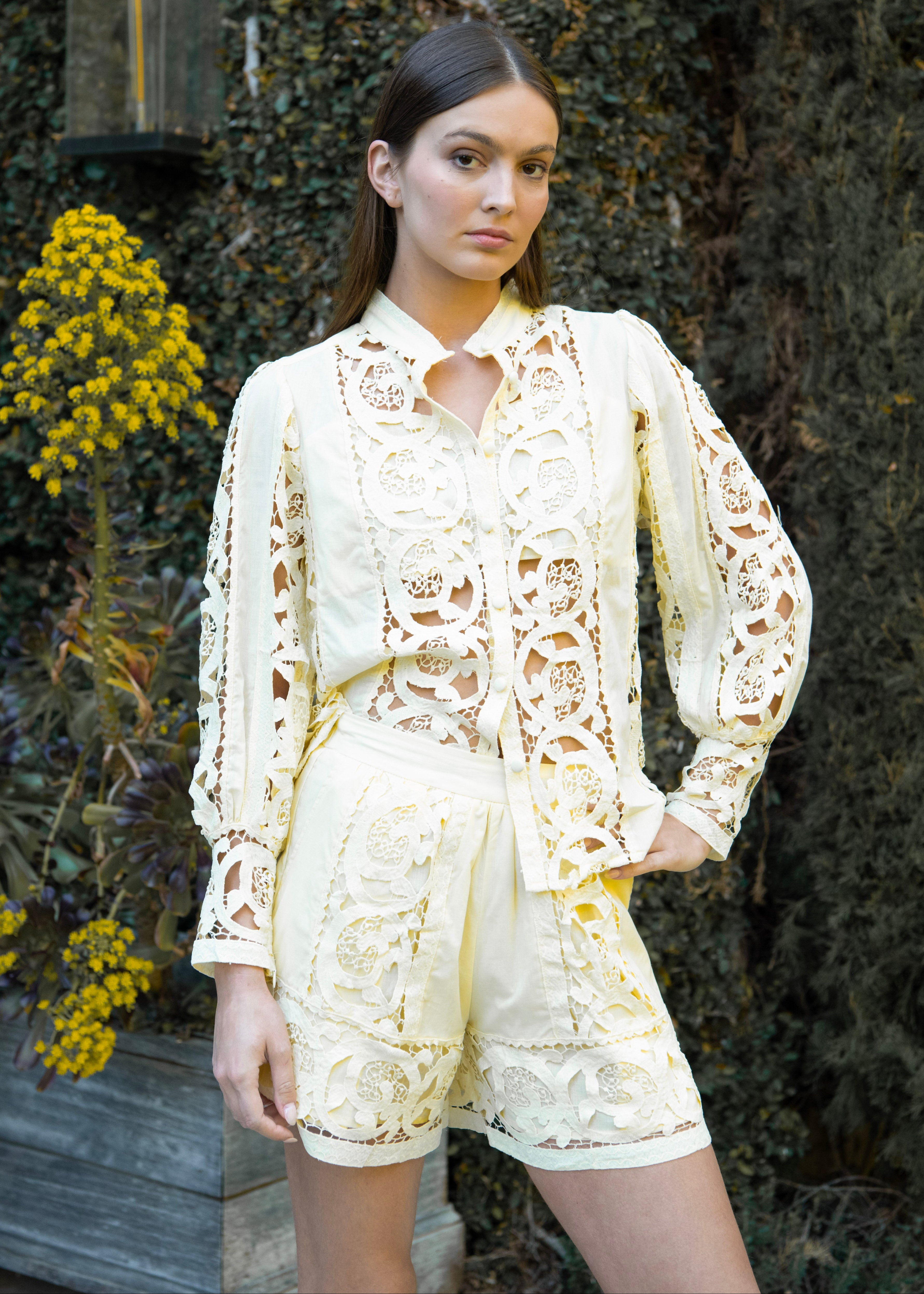 Elna Pale Yellow Lace Embroidered Long Sleeve Top