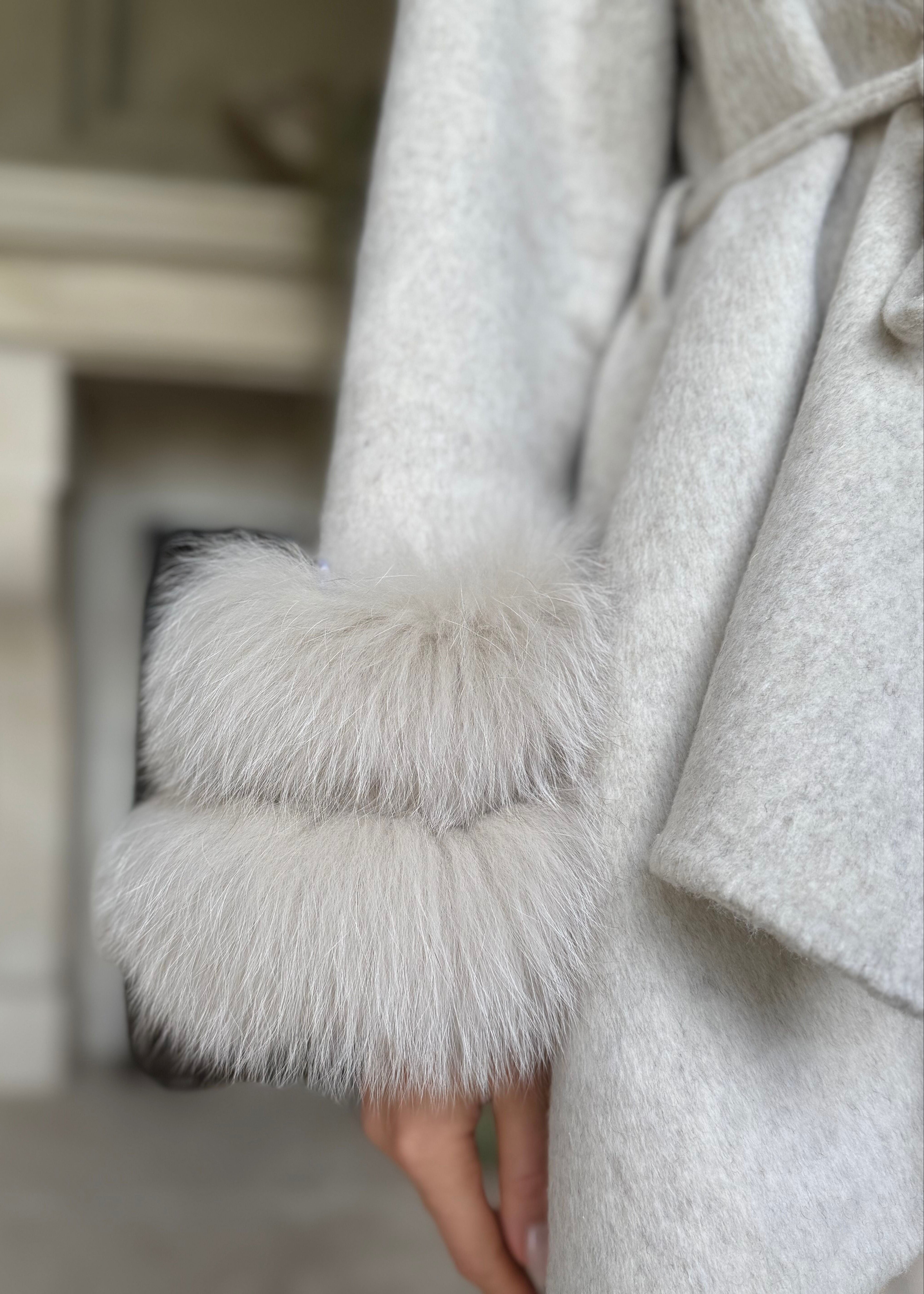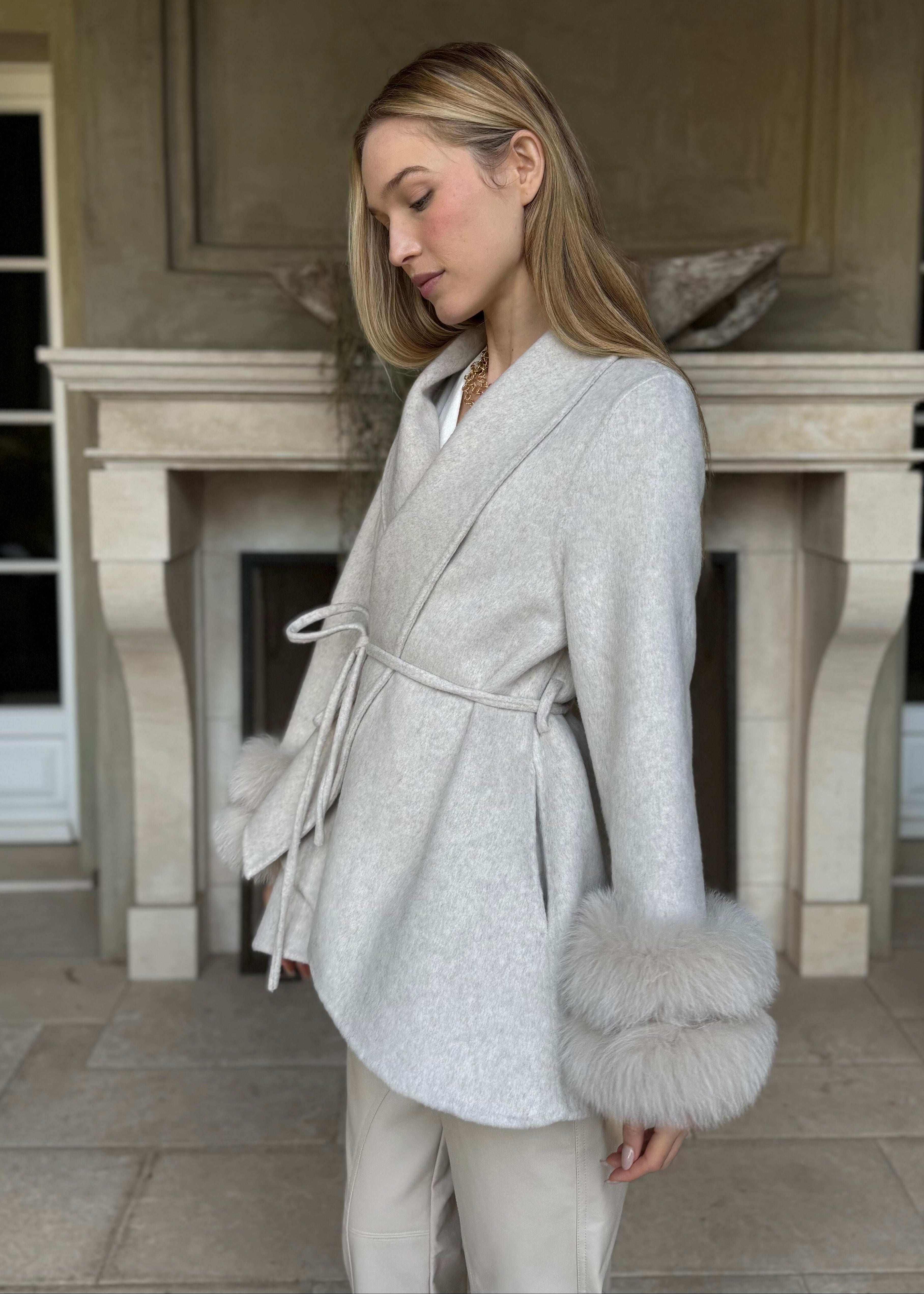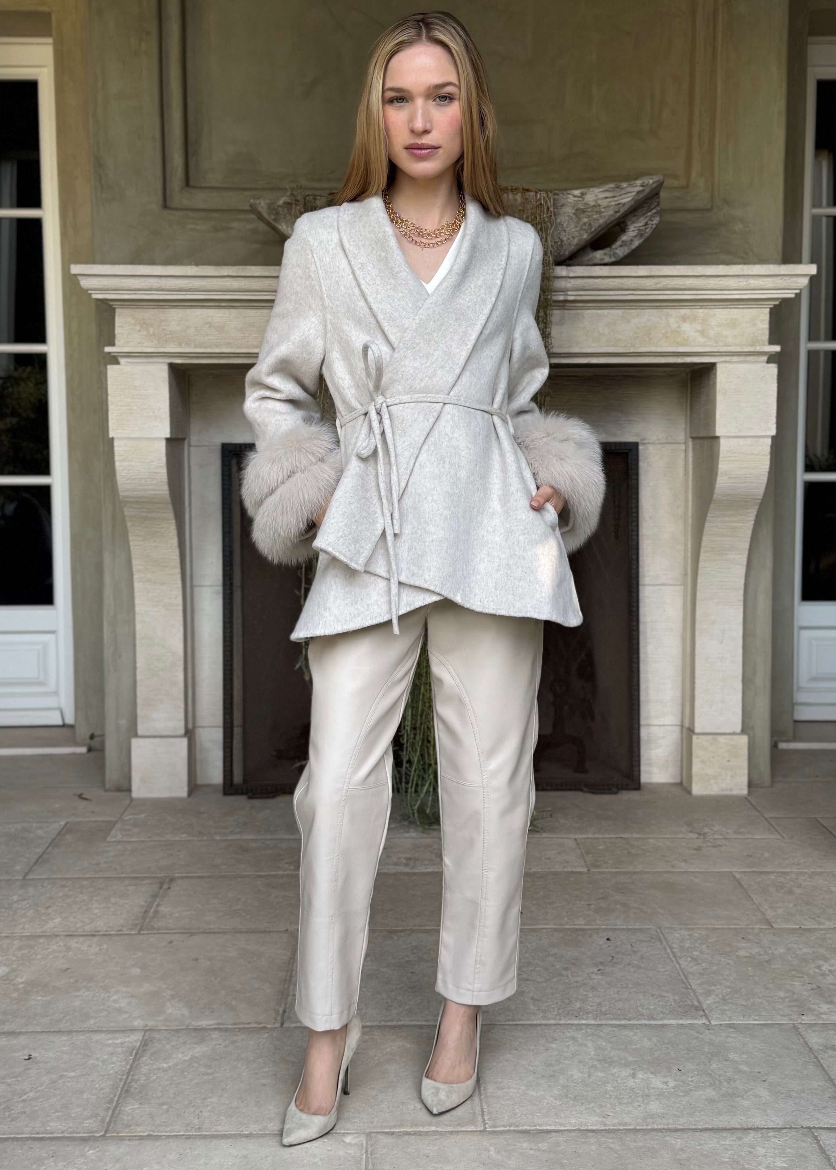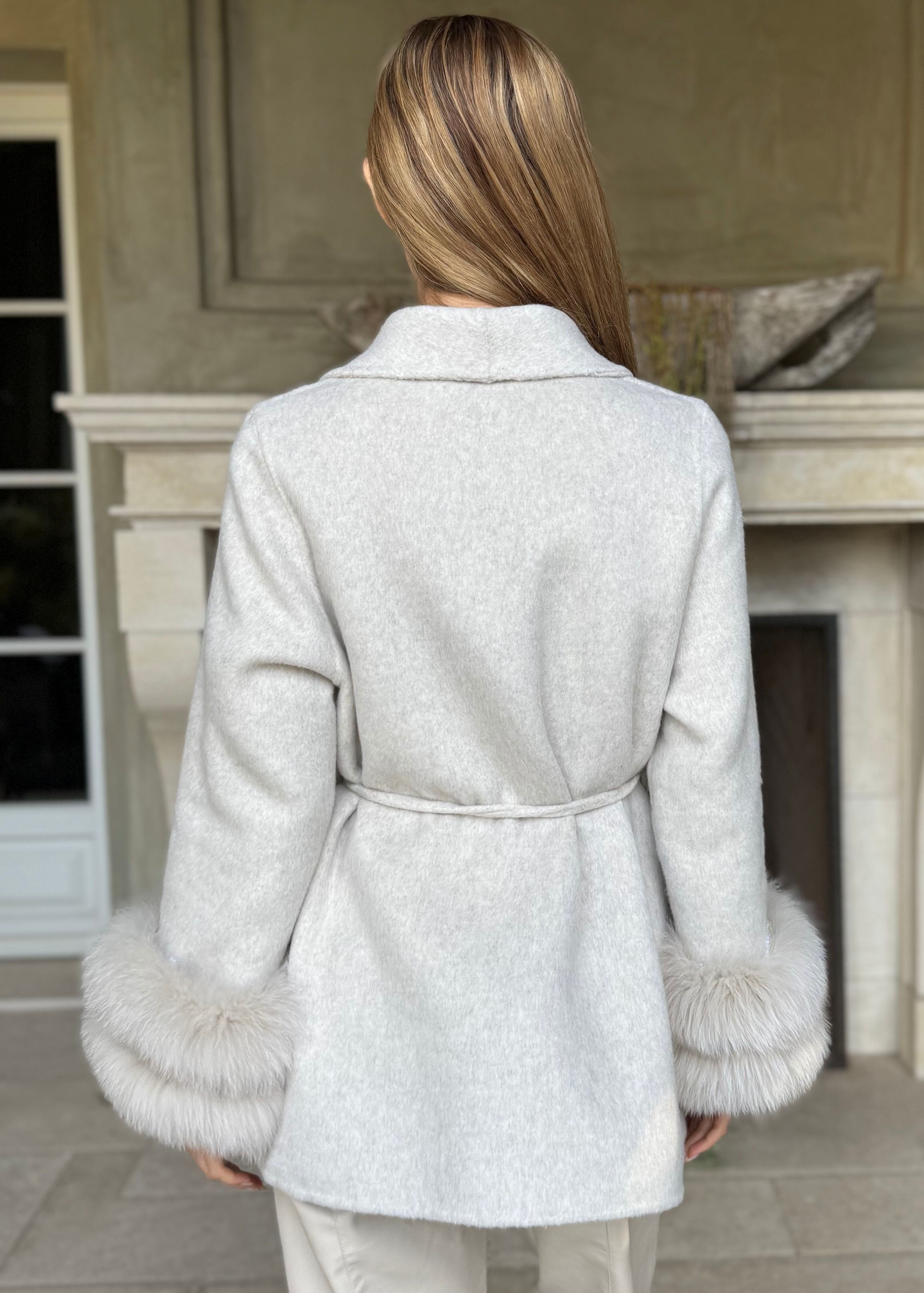 Elsie Light Taupe Wool Cardigan Coat with Detachable Fur Cuffs