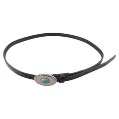 Elevate your style with the Gypsy Western Turquoise Stone Buckle Skinny Belt in White. Featuring a striking turquoise stone buckle, this belt adds a refined western flair to any outfit while maintaining a sleek, skinny silhouette for a sophisticated finish.
