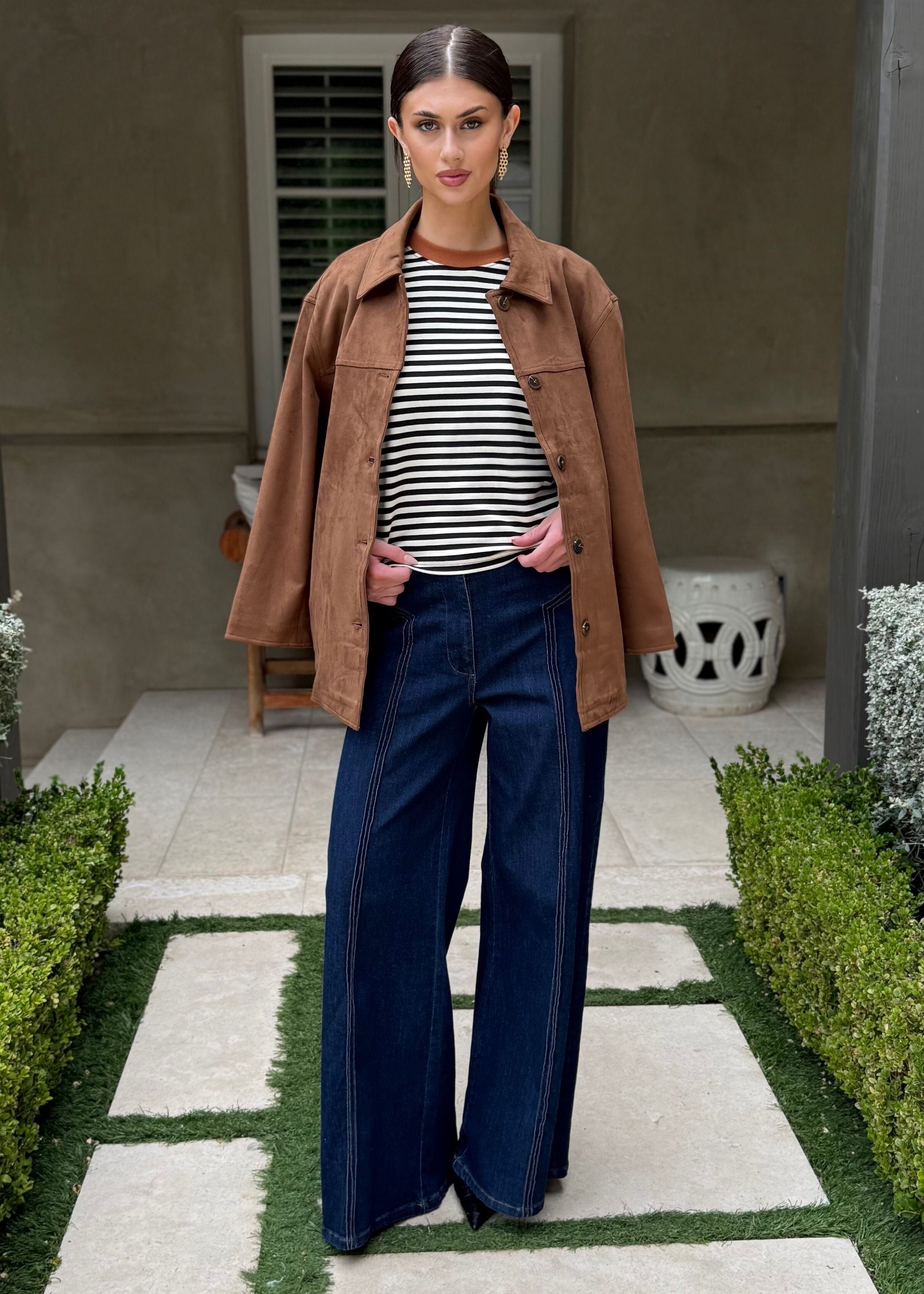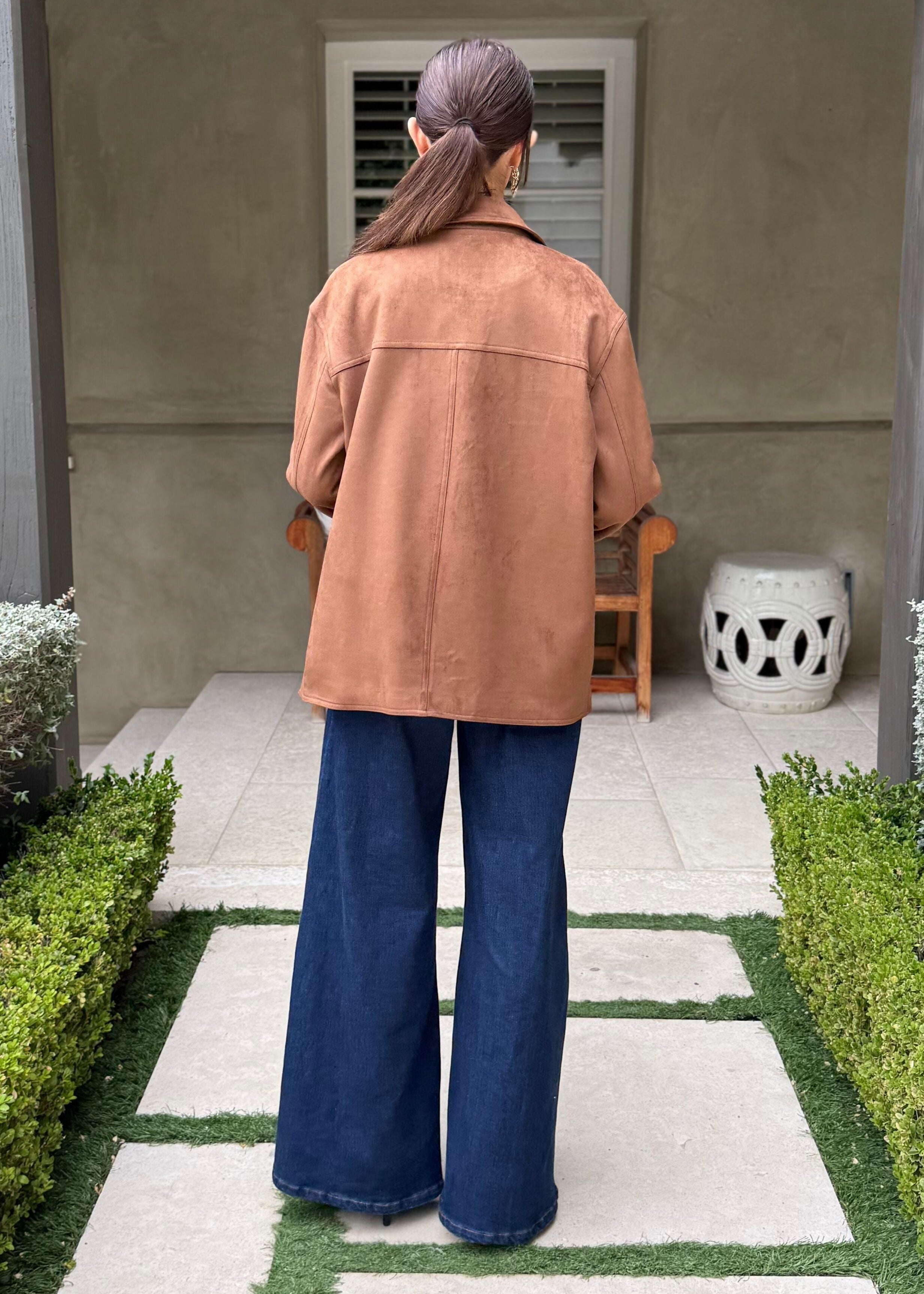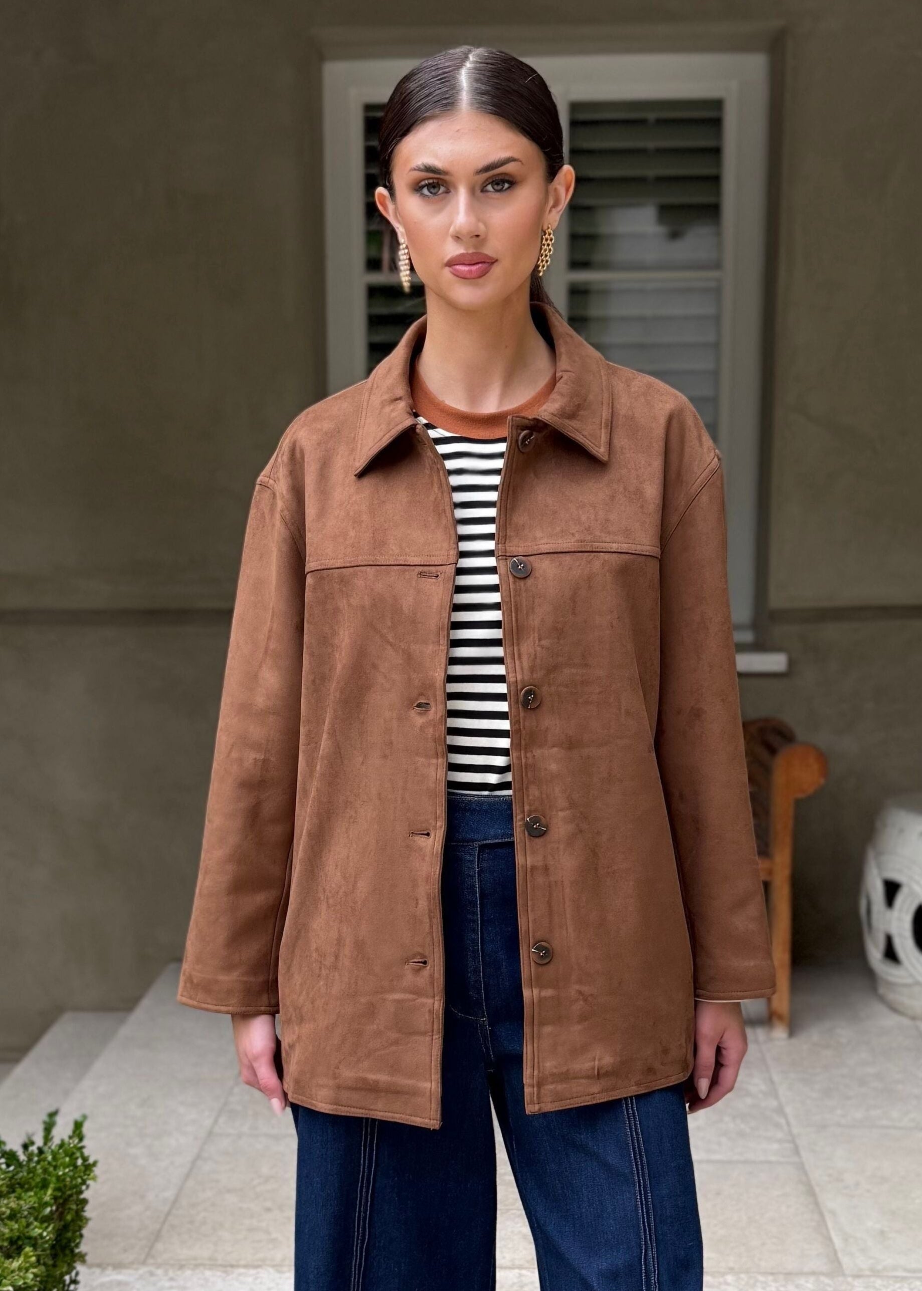 Joanne Long Sleeve Vegan Suede Jacket - Light Brown