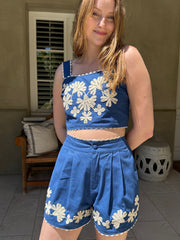 Joey Taupe Scalloped Mini Skirt with Black Floral Embroidery
